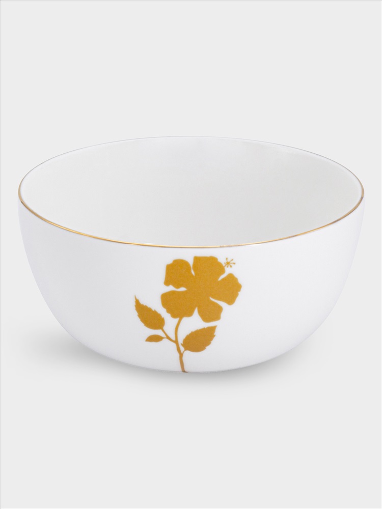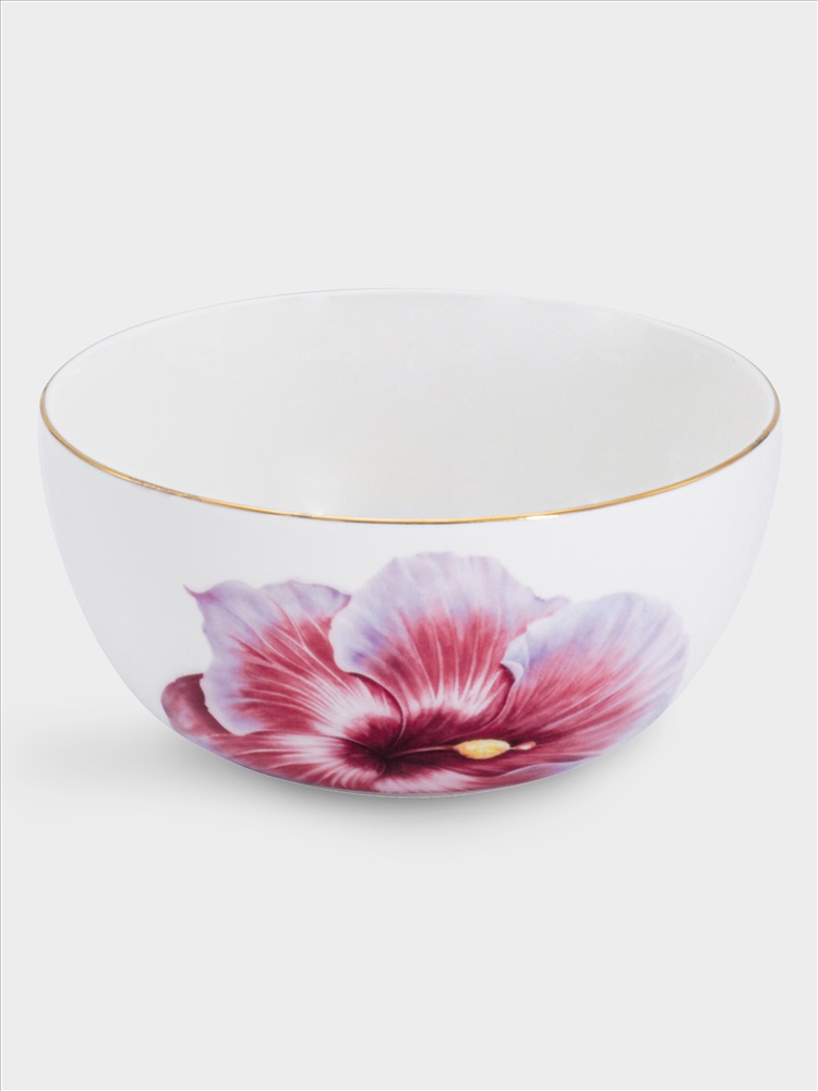 Салатник, 14х7 см, 750 мл, фарфор F, белый, с золотистым кантом, Гибискус, Flowers. Материал: фарфор Fine Bone China. Мыть тёплой водой с применением жидких моющих средств. Не использовать в СВЧ и в посудомоечной машине.