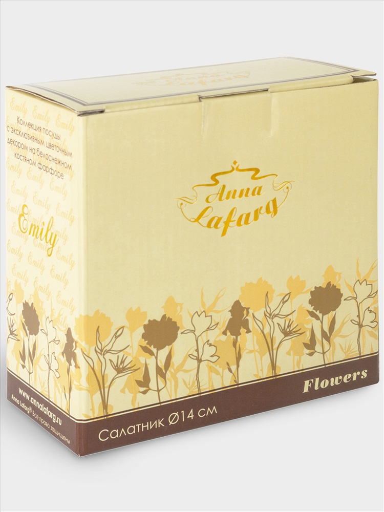 Бренд: ANNA LAFARG EMILY Салатник. Размер: 14х7 см. Объем: 750 мл. Материал: фарфор Fine Bone China. Соответствует требованиям ГОСТ 28390-89 (п.п.1.2.8,1.2.14) ГОСТ Р ИСО 6486-2-2007 п.4. Мыть тёплой водой с применением жидких моющих средств.Не использовать в микроволновой печи и в посудомоечной машине._x000D_