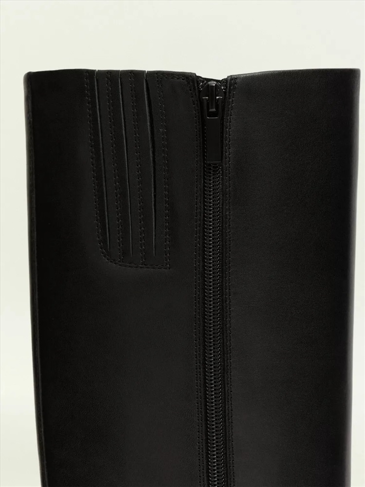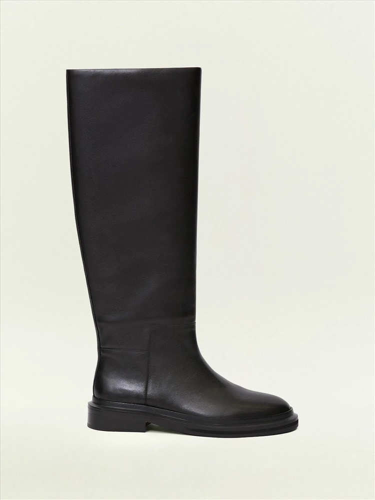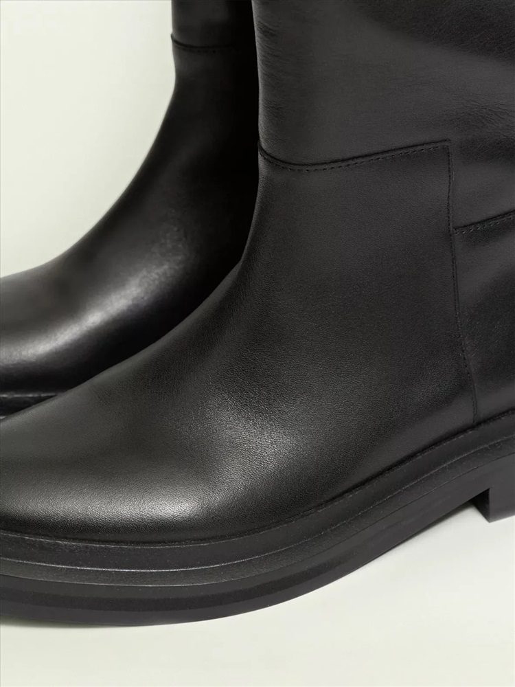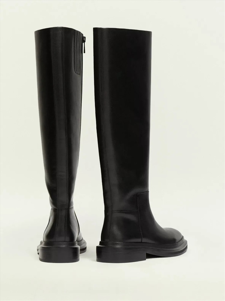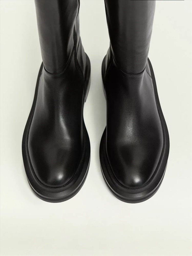 Чёрные сапоги-трубы из натуральной кожи. Актуальная базовая модель на каждый день подойдёт к большинству повседневных образов.