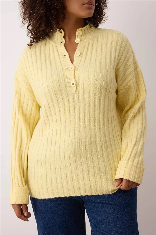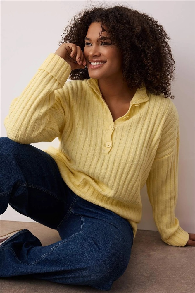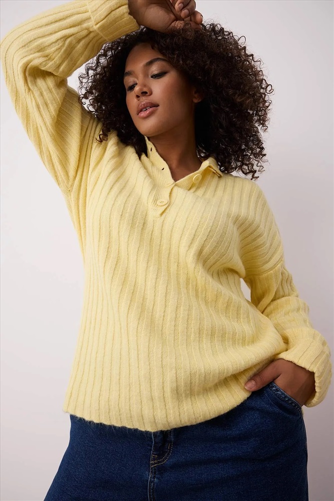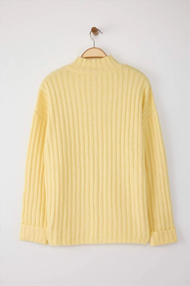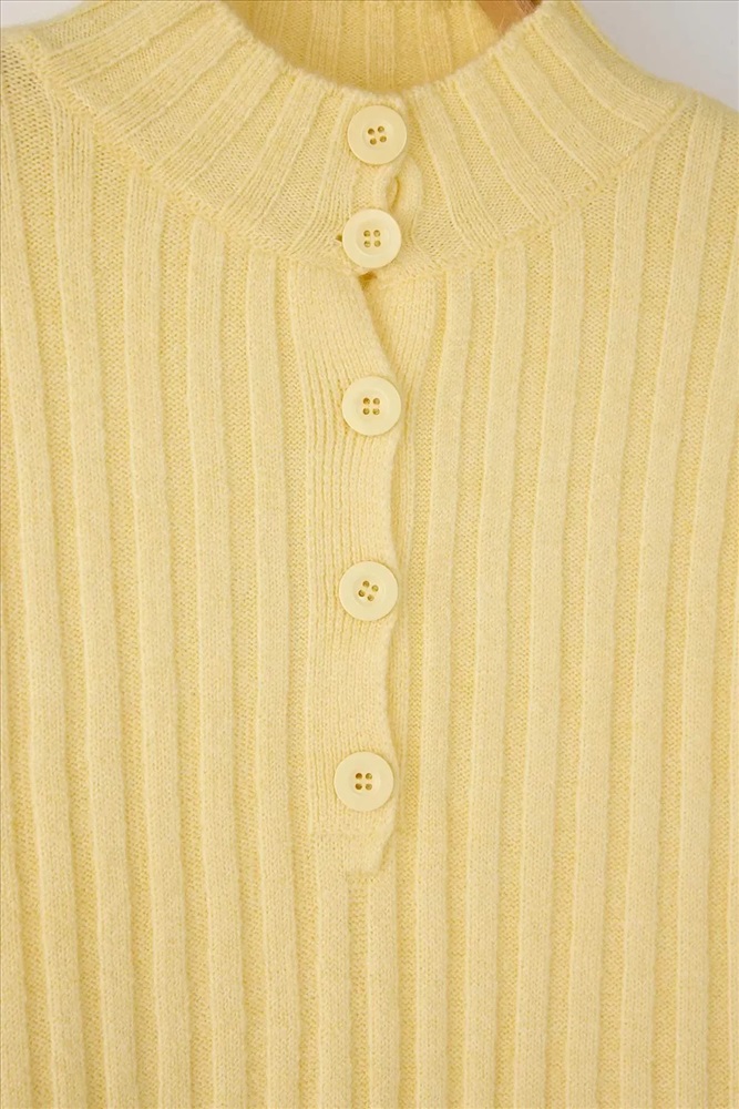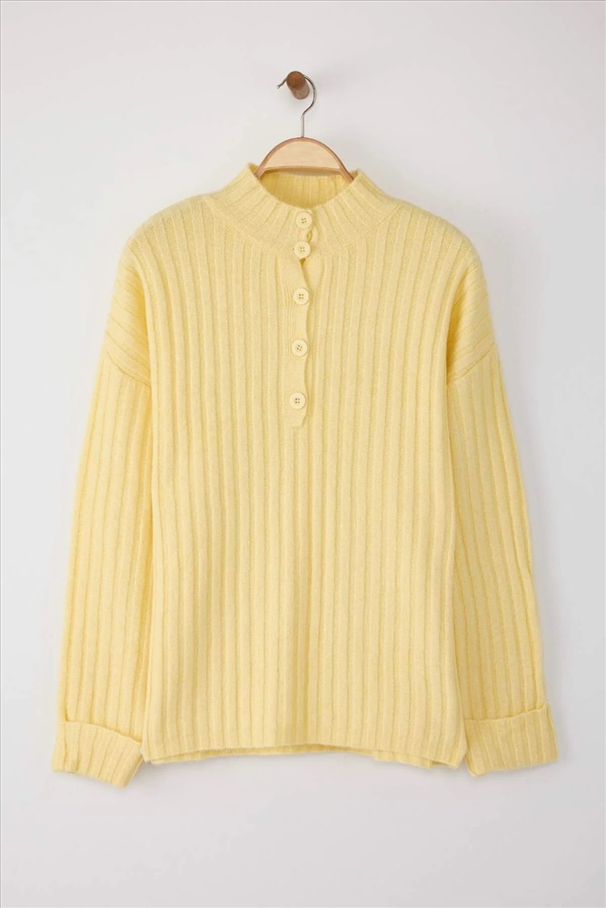 Sarı Fitilli Düğmeli Triko Kazak TBBAW24AN00045