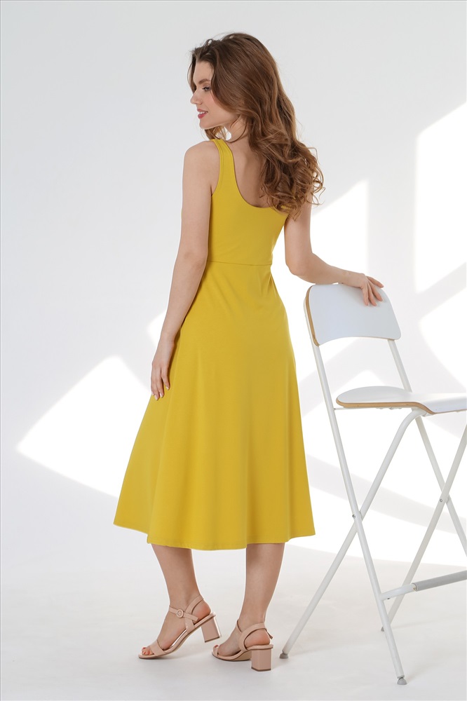 Ткань: Вискоза ВИСКОЗА - это достаточно интересный материал, получаемый из натурального сырья (целлюлозы) искусственным путем. Интересна ткань тем, что она может быть похожа на шелк, шерсть или лен. Все зависит от того, каким способом материал был обработан. Ткань очень приятная и мягкая на ощупь, образовывает на изделиях красивые складки. Из-за своей достаточно высокой гигроскопичности, вискоза способна впитать много влаги, так, например, по сравнению с хлопком, она впитывает ее в два раза больше. Явным преимуществом вискозы является то, что она не электризуется. Сарафан молодежный из гладкокрашеного вискозного трикотажного полотна, отрезной под грудью, расширенный книзу, с горловиной овальной формы сзади и V-образной формы спереди. Лиф – на подкладке из основного материала, с рельефами по переду.