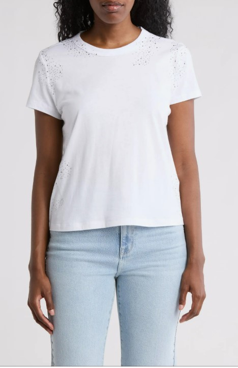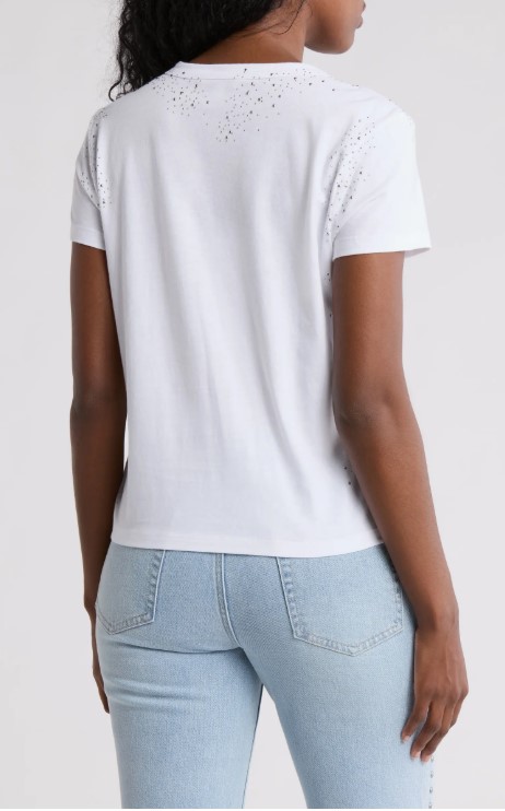 Scattered Rhinestone Cotton T-Shirt DKNY Jeans