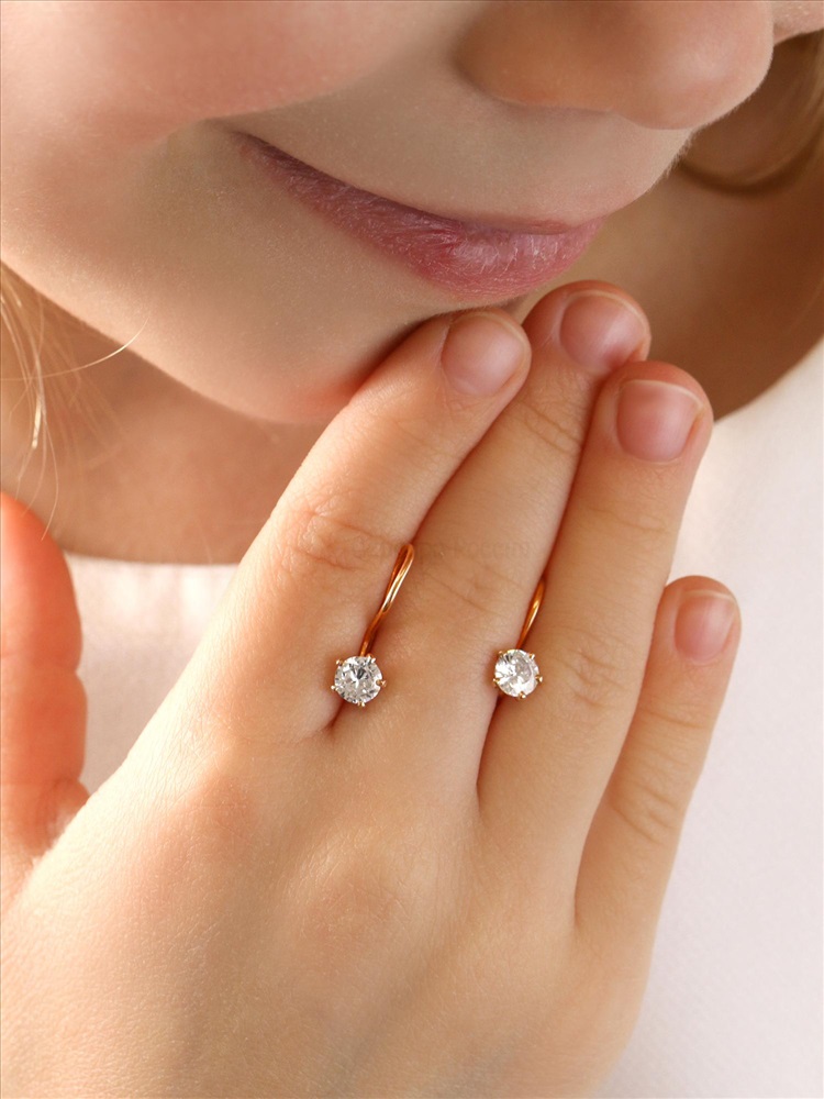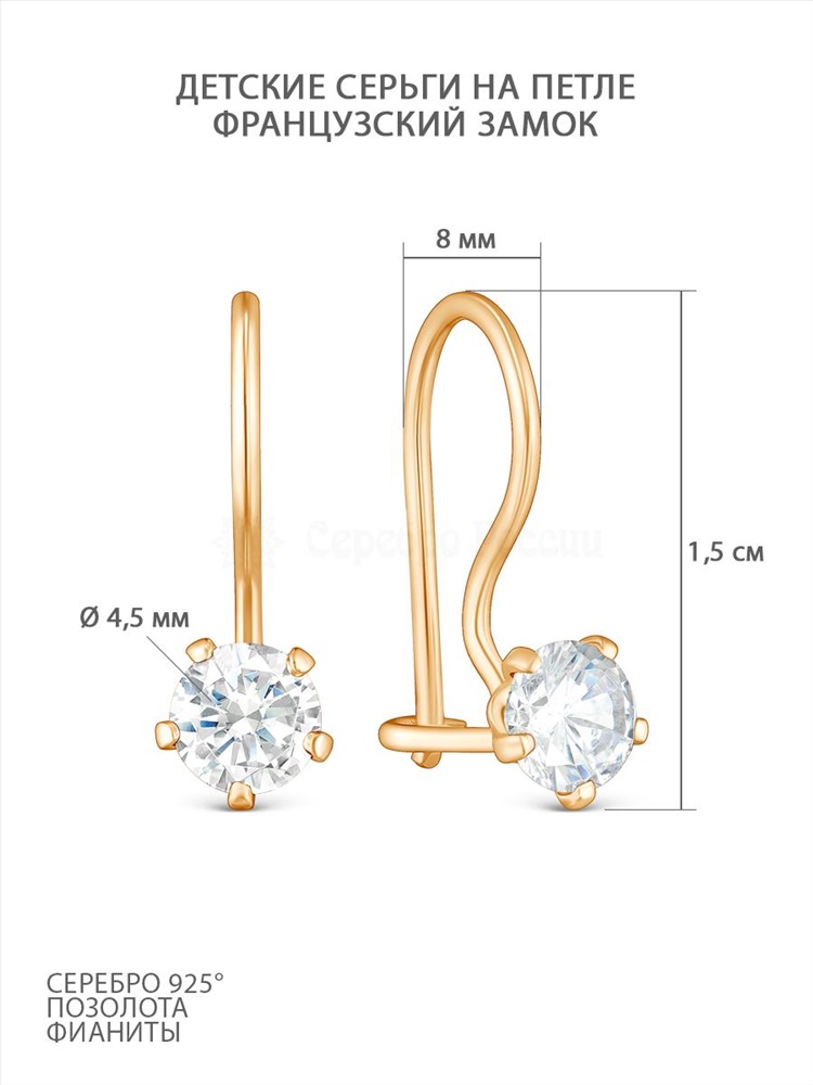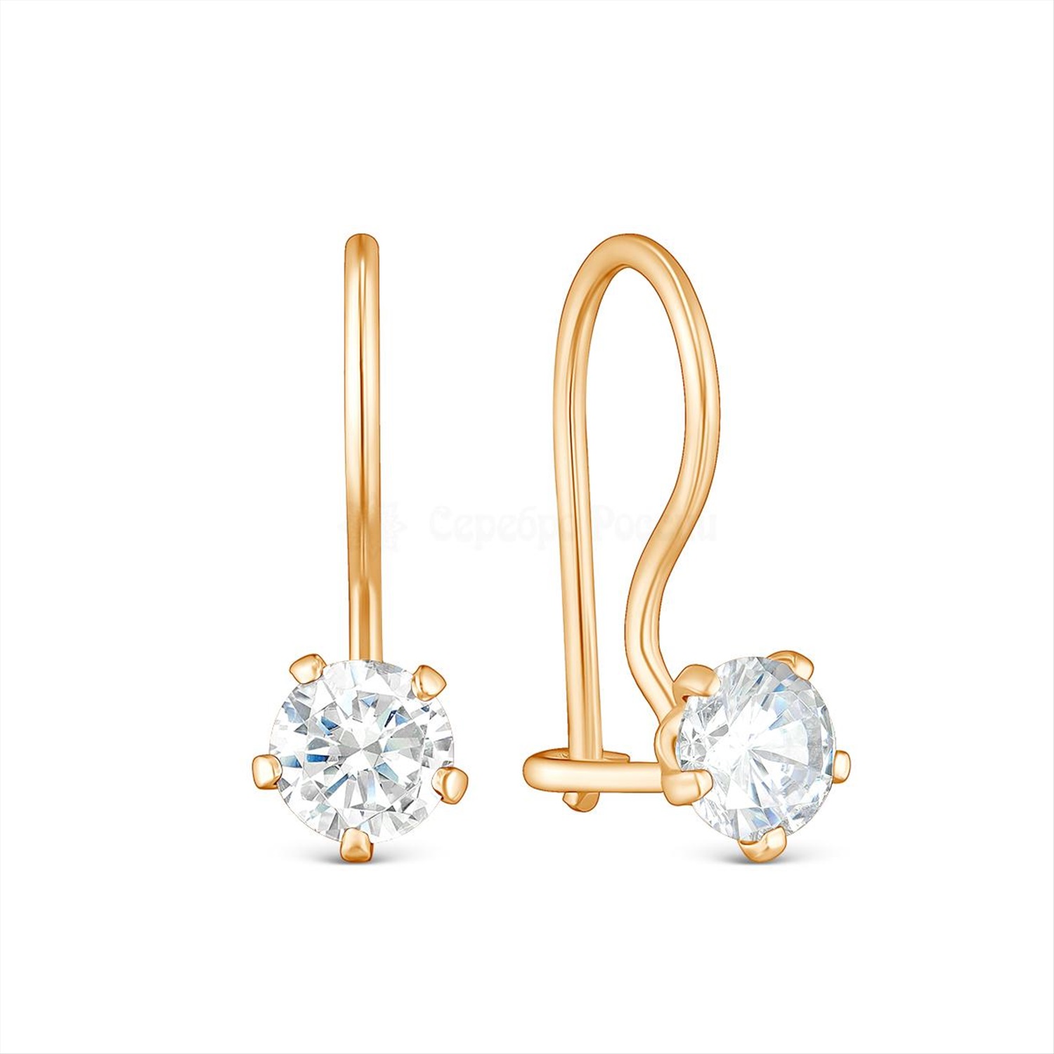 Серьги детские из золочёного серебра с фианитами 925 пробы 166з бесцветный