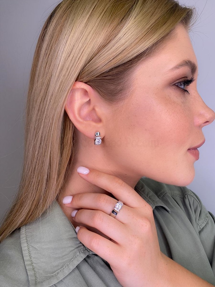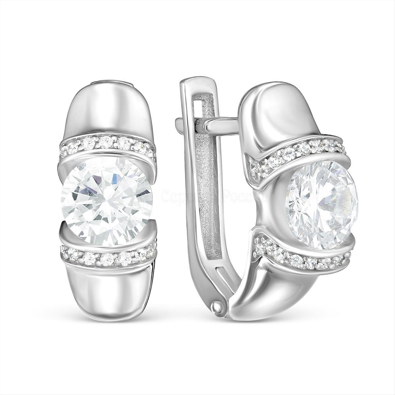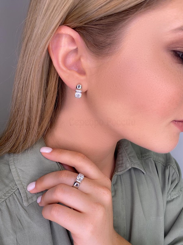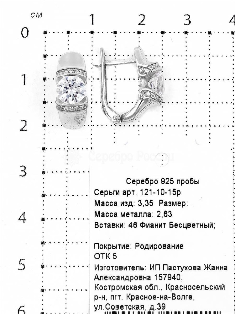 Серьги из серебра с фианитами родированные 925 пробы 121-10-15р
