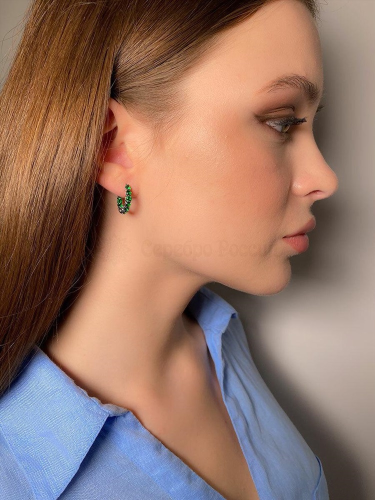 Серьги из серебра с фианитами родированные 925 пробы с-7208р232