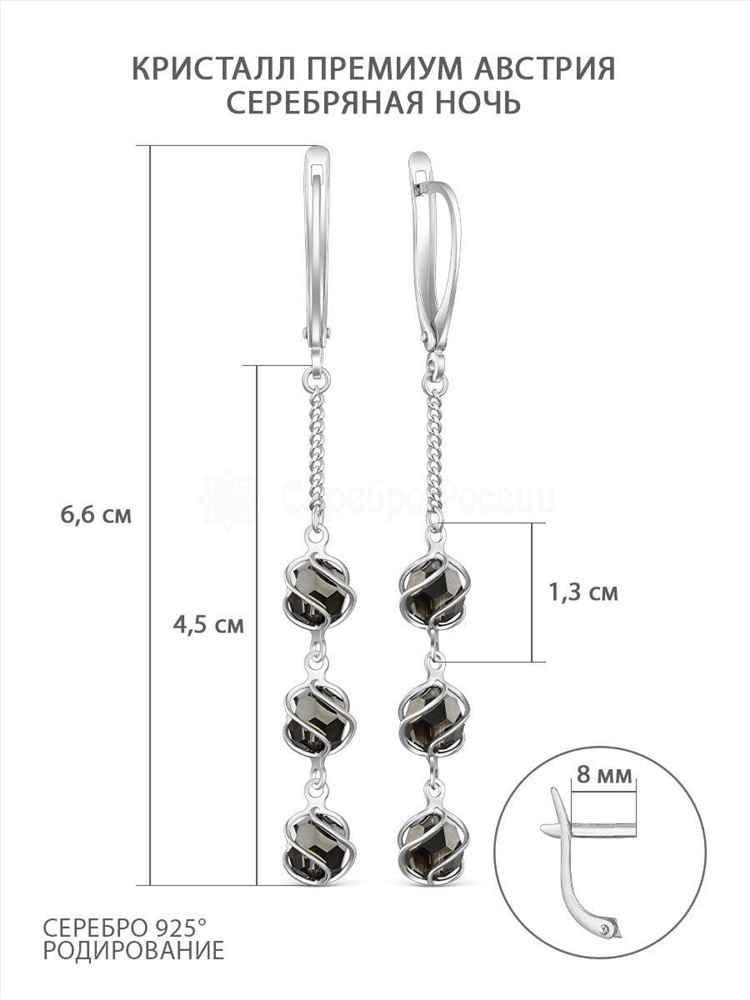 Серьги из серебра с кристаллами Swarovski Серебряная ночь 925 пробы с-2257-6SWр-001SINI