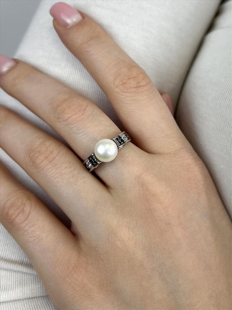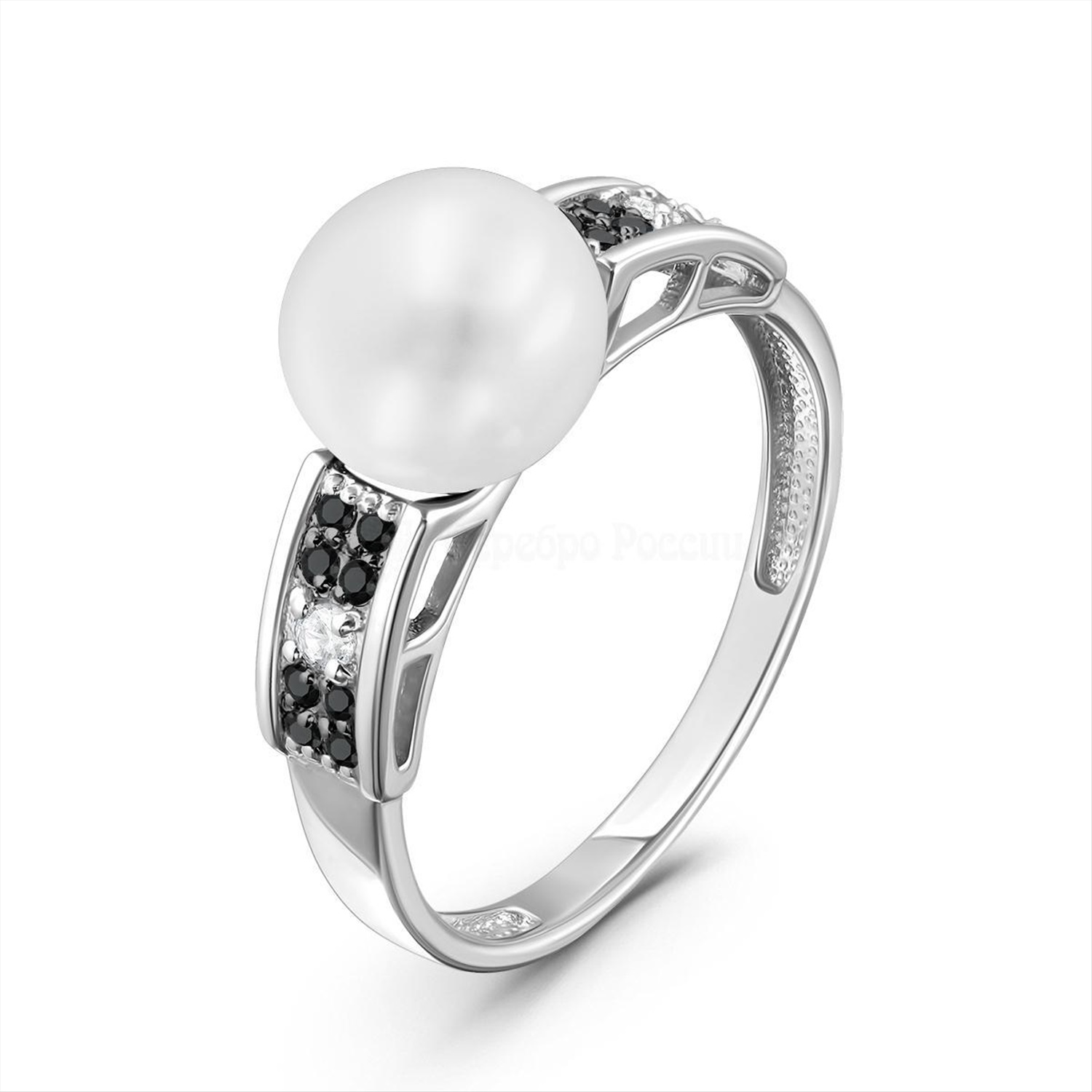 Серьги из серебра с культ. жемчугом и фианитами родированные 925 пробы С1596р1005216