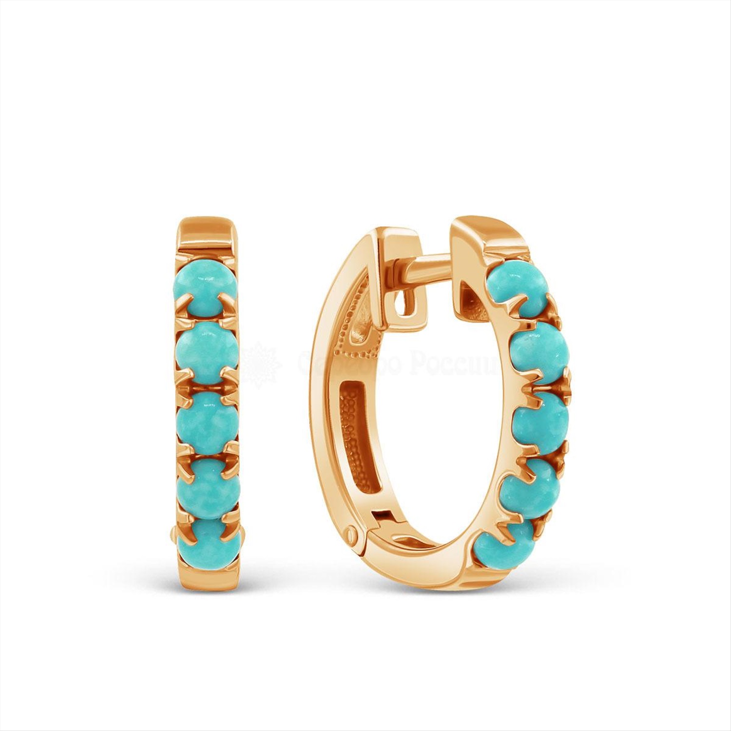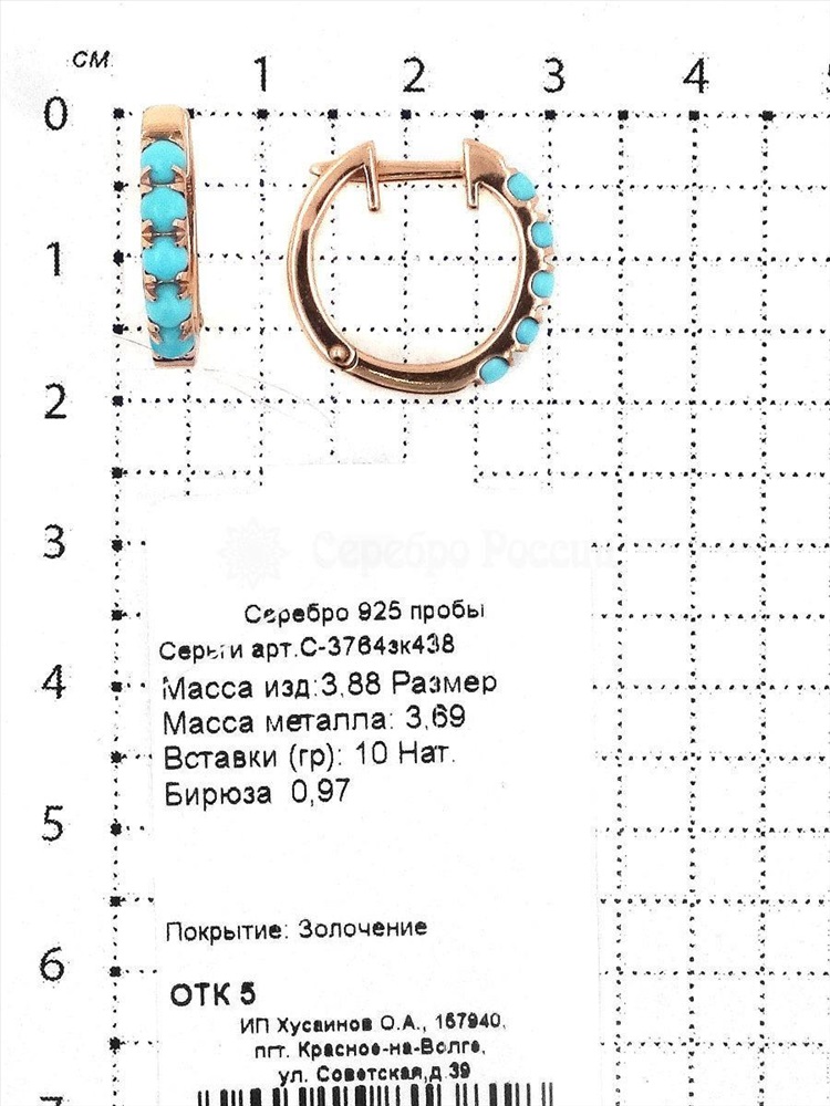 Серьги из золочёного серебра с нат.бирюзой 925 пробы С-3764зк438
