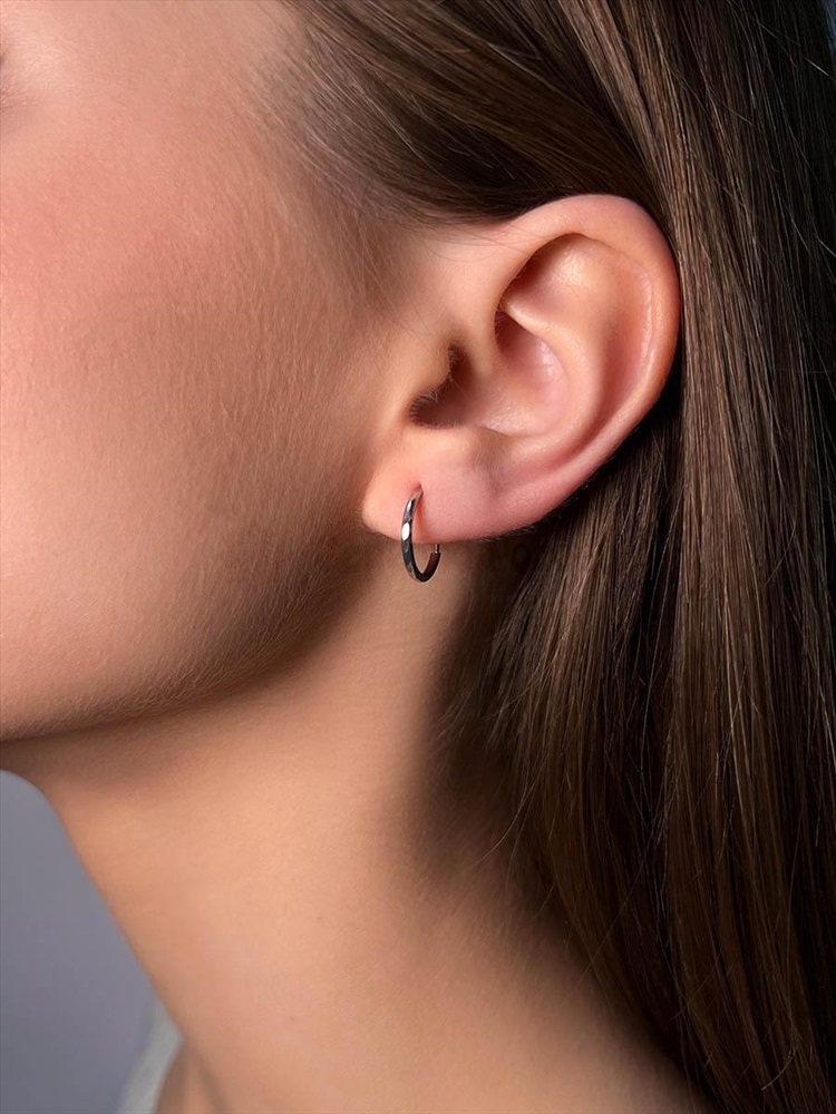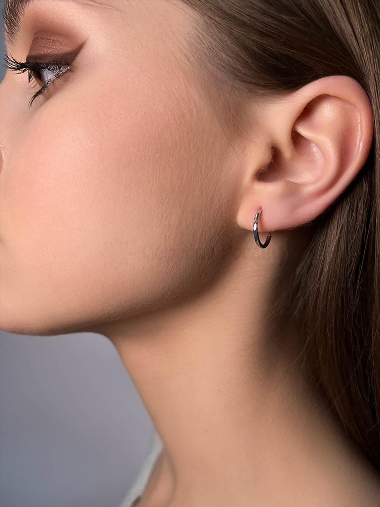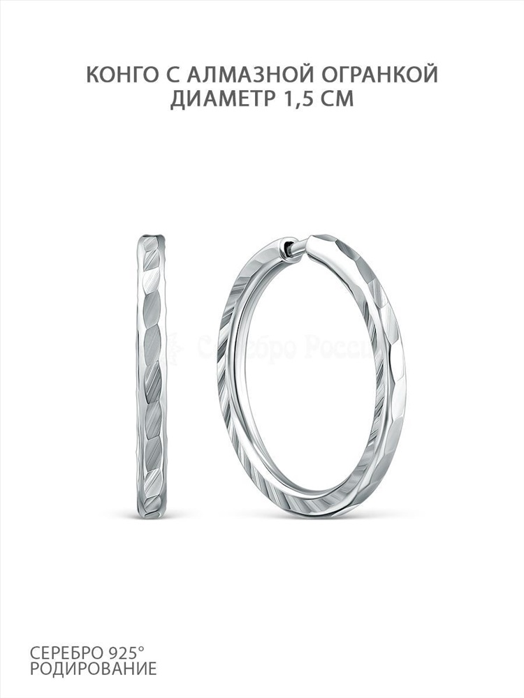 Серьги-конго из серебра с алмазной огранкой родированные - диаметр 1,5 см 925 пробы 2-188ар