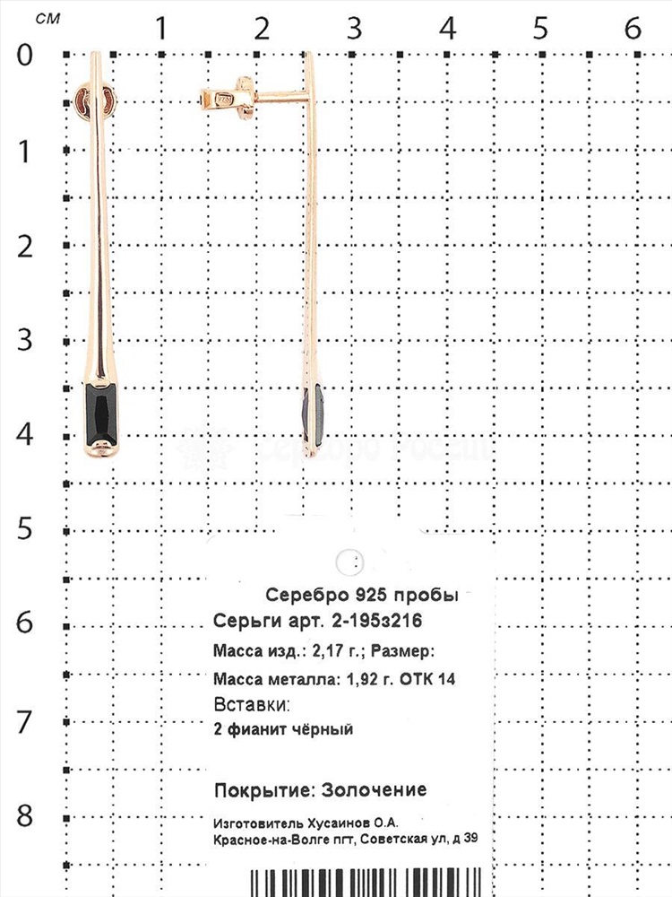 Серьги-пусеты из золочёного серебра с фианитами 925 пробы 2-195з216