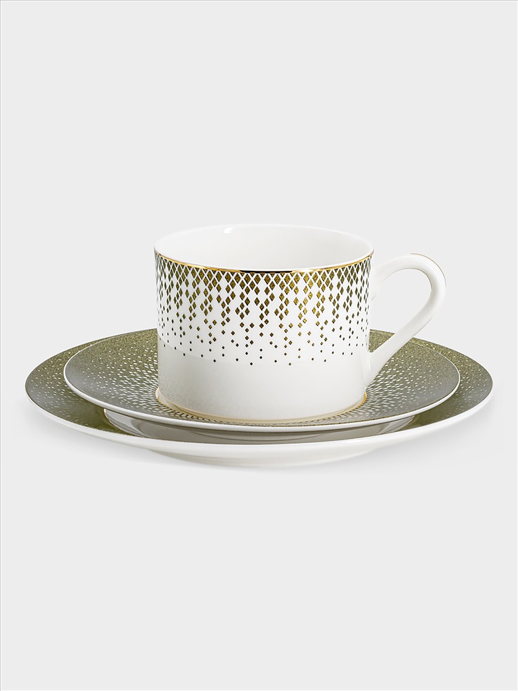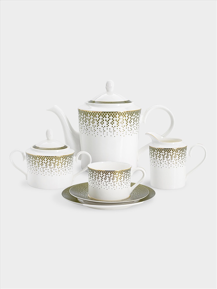 Бренд: ANNA LAFARG EMILY Коллекция: РЕГУЛЯРНАЯ Сервиз чайный, 6 перс, 21 пр, фарфор F, бело-зеленый, с золотистым кантом, матовый, Virtus. Материал: фарфор Fine Bone China. Не использовать в посудомоечной машине и СВЧ. Мыть тёплой водой мягкими моющими средствами. При длительном контакте с солью, уксусом, томатным соусом, цитрусовыми - элементы декора на посуде могут быть повреждены.