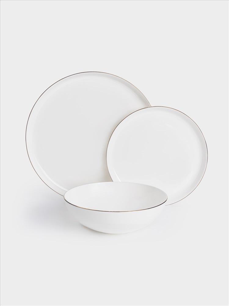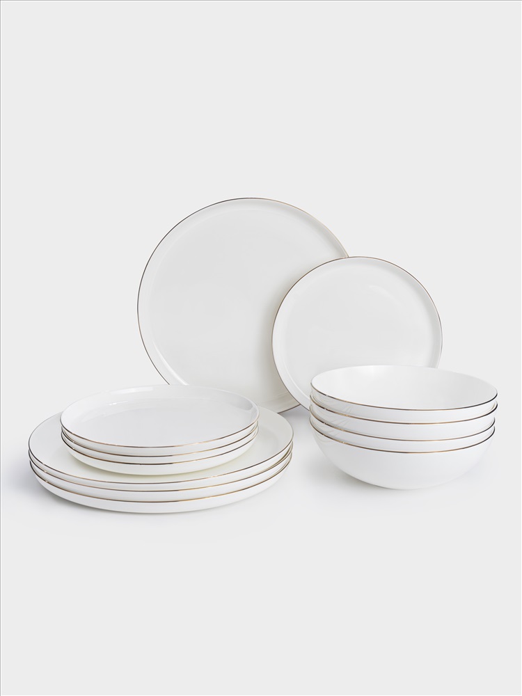Сервиз обеденный, 4 перс, 12 пр, фарфор F, белый, с золотистым кантом, Cashmere Luxe. Материал: фарфор Fine Bone China. Рекомендуется ручная мойка тёплой водой с применением жидких моющих средств. Можно использовать в СВЧ.