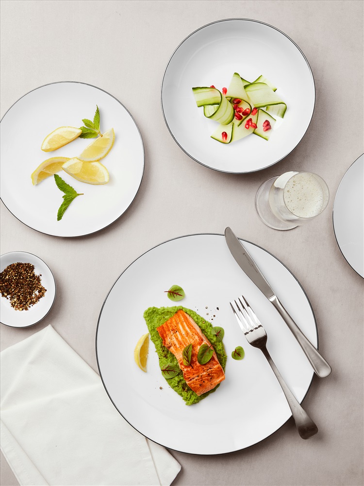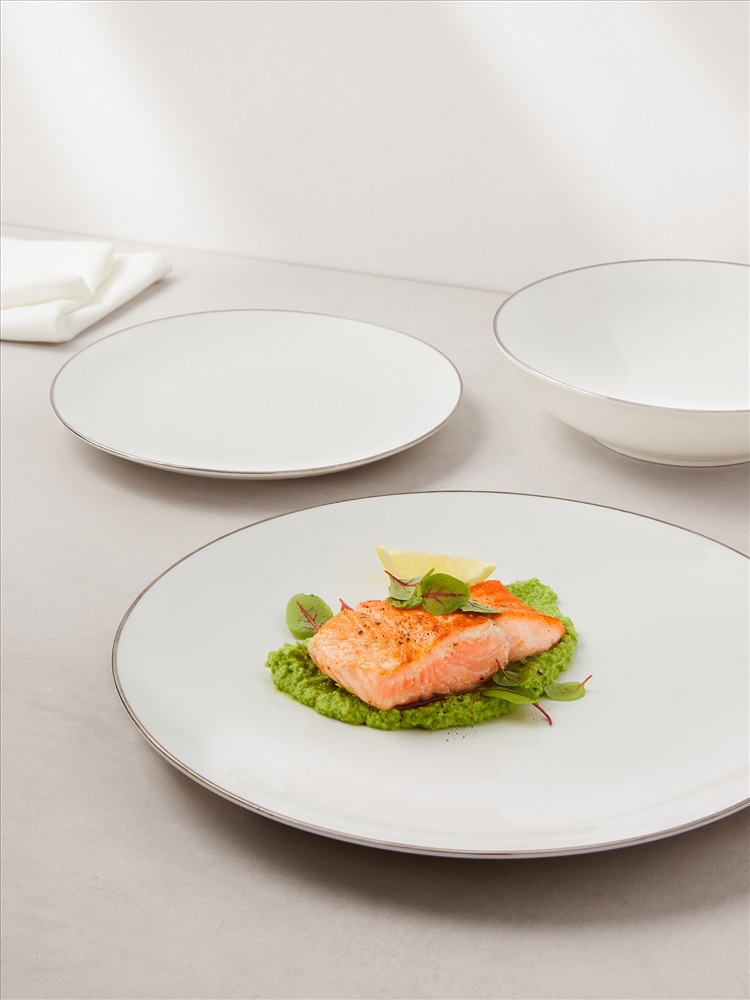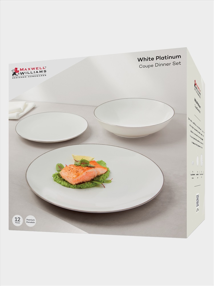 Сервиз обеденный, 4 перс, 12 пр, фарфор P, белый, с серебристым кантом, White Platinum