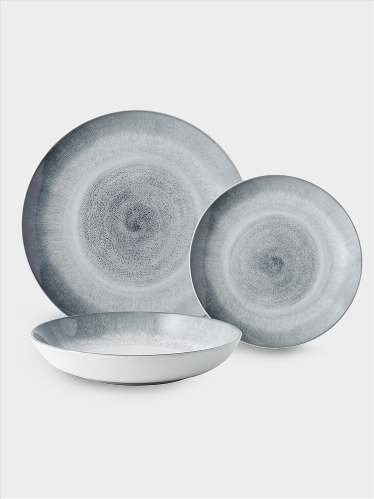 Сервиз обеденный, 4 перс, 12 пр, керамика, серо-голубой, Спираль, Vulcano. Материал: керамика. Мыть тёплой водой с применением мягких  моющих средств. Можно использовать в микроволновой печи и мыть в посудомоечной машине.