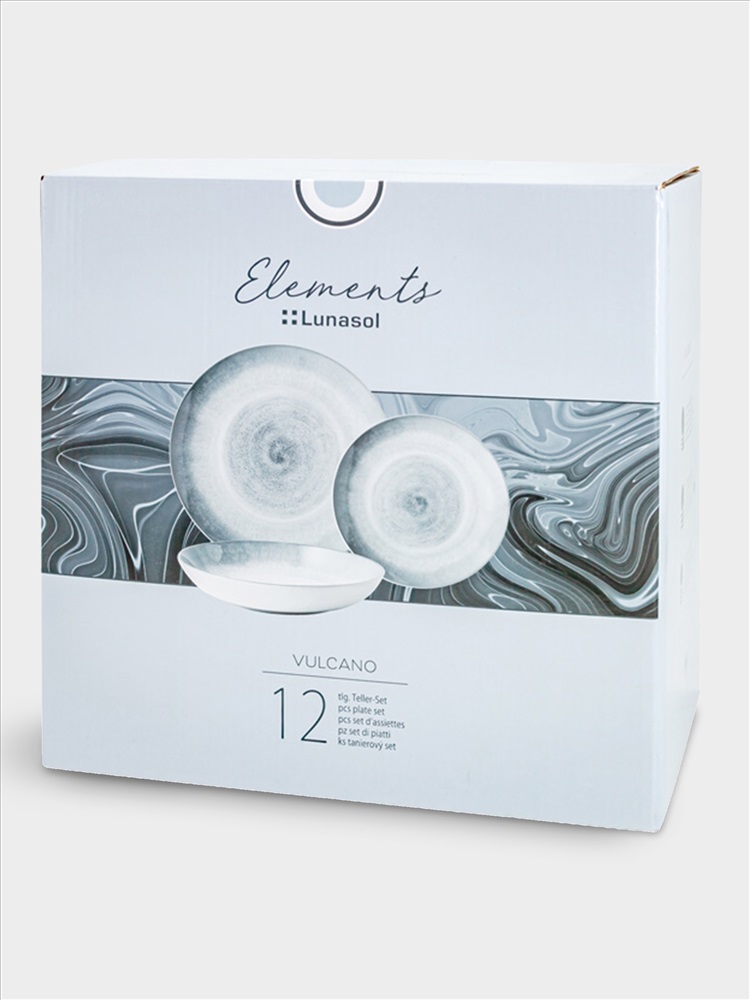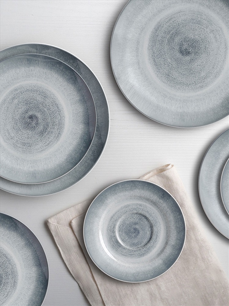 Сервиз обеденный, 4 перс, 12 пр, керамика, серо-голубой, Спираль, Vulcano