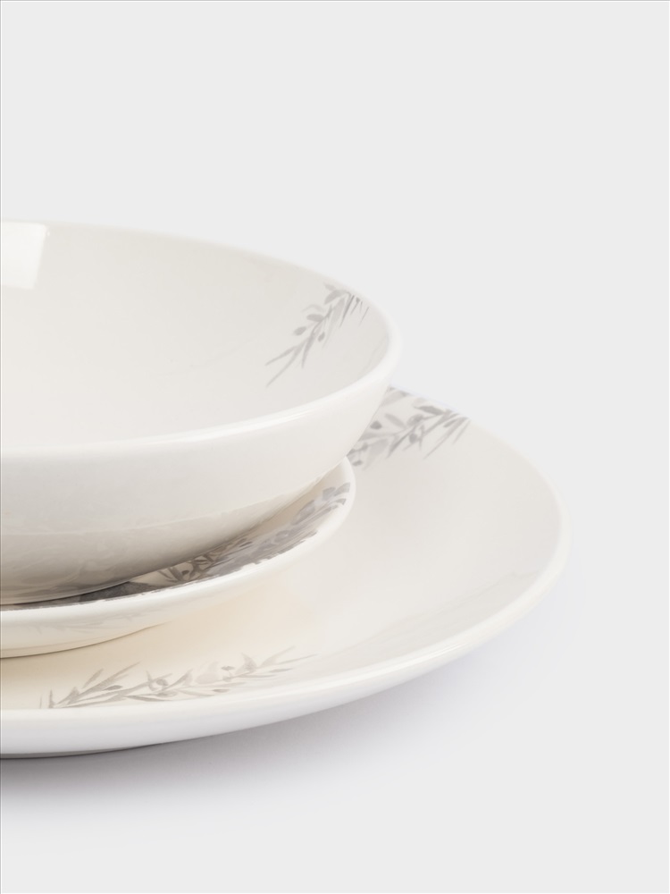 Комплектация и размеры: тарелка обеденная, 27 см - 6 шт, тарелка закусочная, 19 см - 6 шт, тарелка суповая, 20х5 см - 6 шт. Материал: керамика. Подходит для использования в микроволновой печи. Рекомендуется мыть вручную с применением мягких моющих средств. Не использовать для ухода абразивные чистящие средства и жесткие губки. Можно мыть в посудомоечной машине. Комментарии к товару