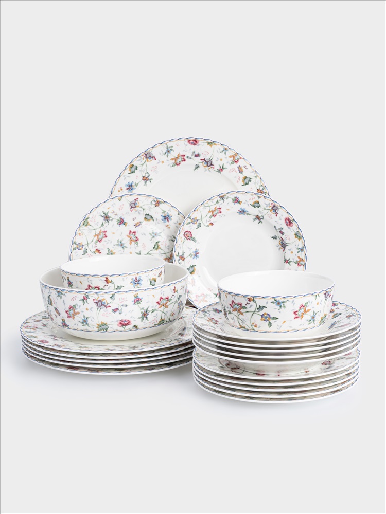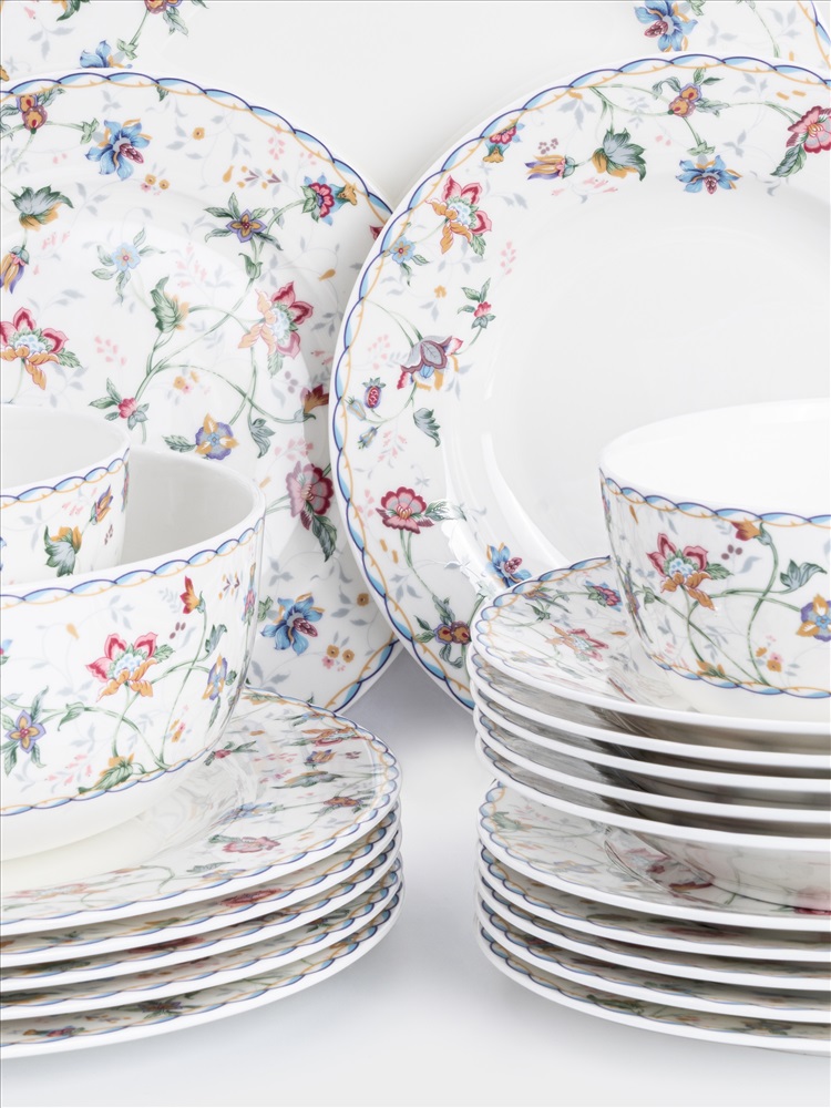 Бренд: ANNA LAFARG EMILY Коллекция: ПРОВАНС Страна бренда: Китай Сервиз обеденный, 6 перс, 21 пр, фарфор F, белый, Цветы, Buckingham. Материал: фарфор Fine Bone China. Мыть тёплой водой с применением жидких моющих средств и в посудомоечной машине. Можно использовать в СВЧ.