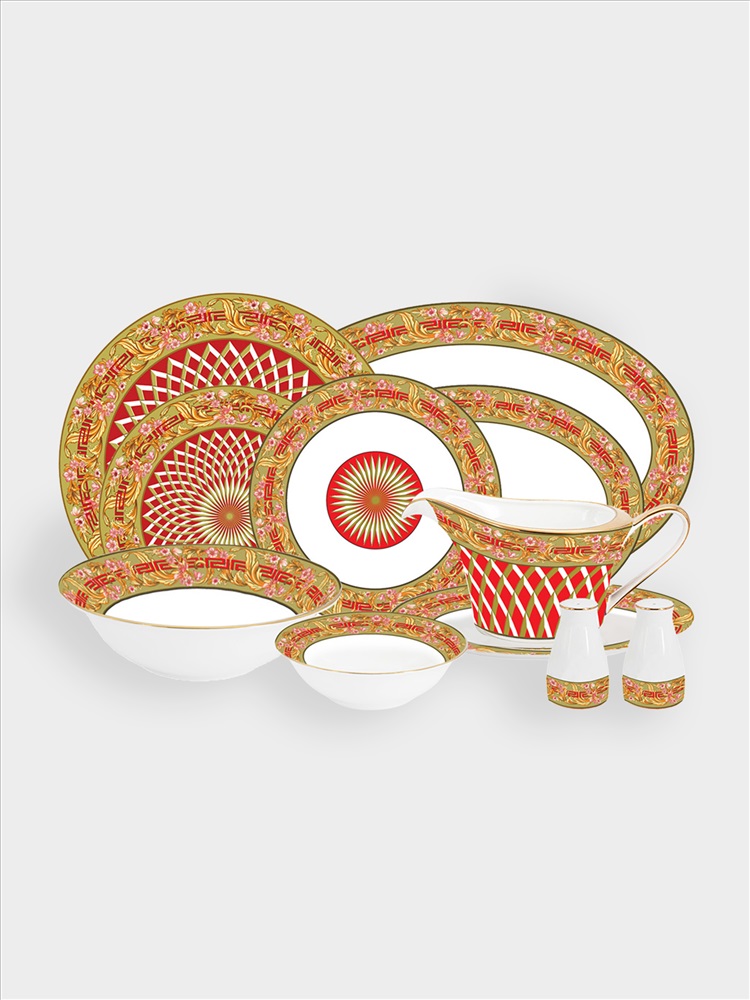 Сервиз обеденный, 6 перс, 26 пр, фарфор F, бежево-красный, с золотистым кантом, Aurelia. Материал: фарфор Fine Bone China. Мыть тёплой водой с применением жидких моющих средств. Не использовать в СВЧ и в посудомоечной машине.