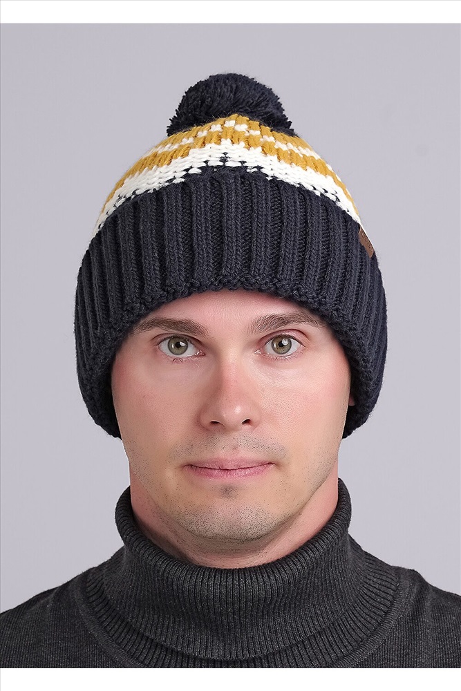 Страна производства: Россия Мужская шапка жаккардового переплетения с отворотом, декорирована нашивкой логотип и ниточным помпоном. Утепление флисом по всей голове. Отлично подойдёт для холодной зимы.