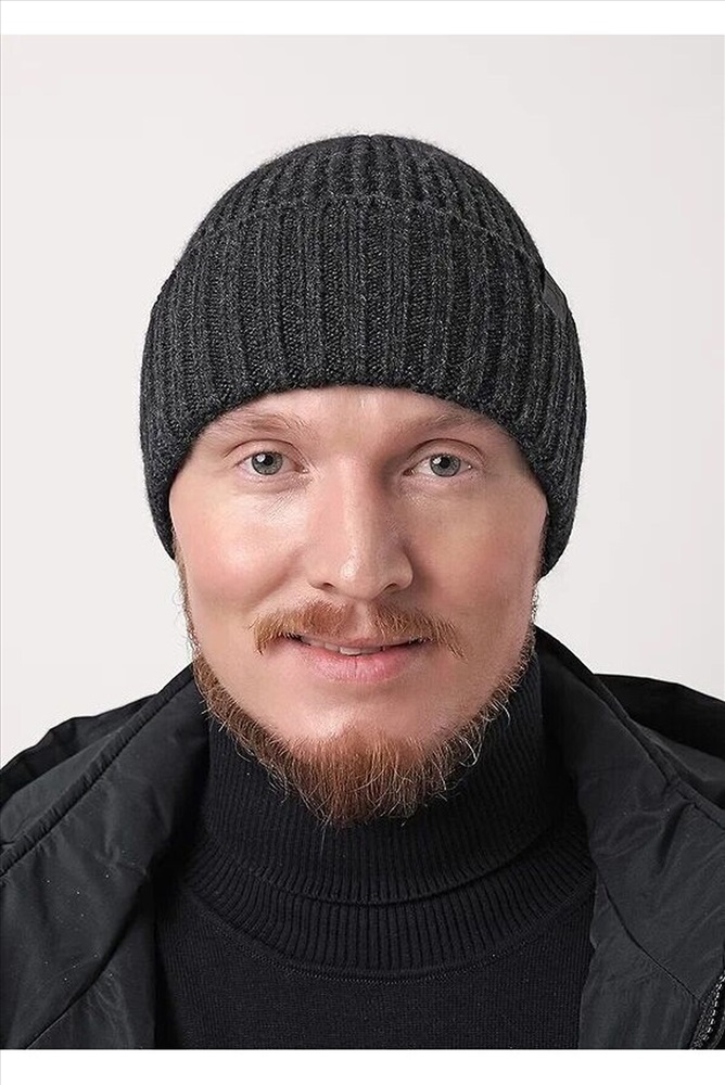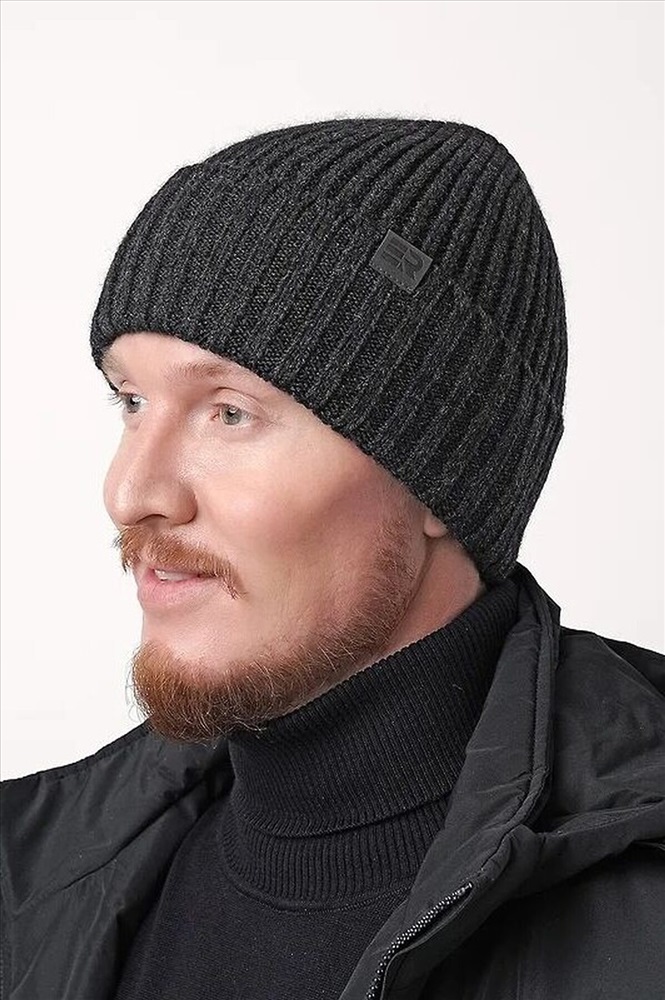 Мужская шапка, связана ластичным переплетением с отворотом. Декорирована стильной нашивкой- логотип. Выполнена из высококачественной пряжи с добавлением шерсти. Приятная на ощупь,обеспечивает защиту от непогоды. Прекрасный вариант для холодной зимы.