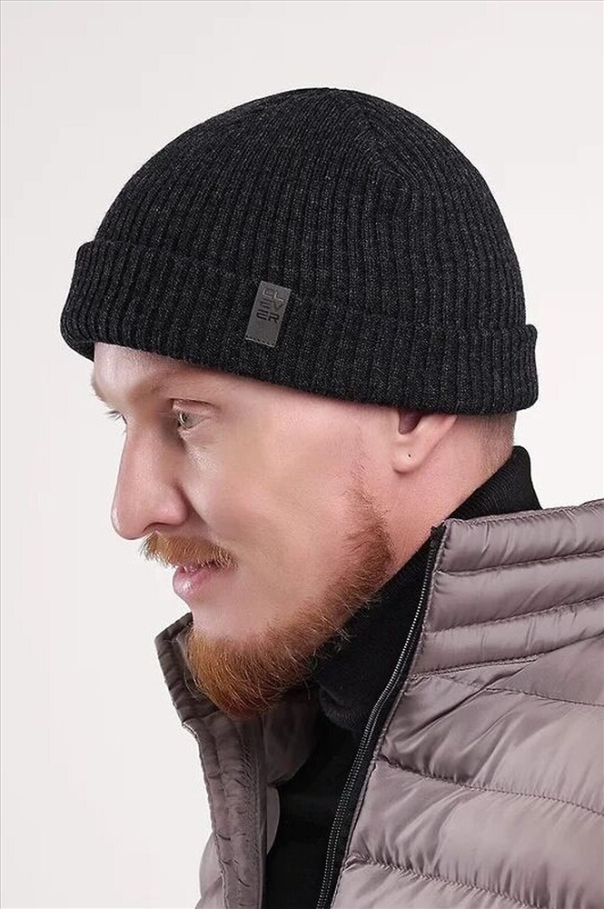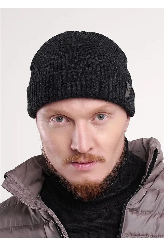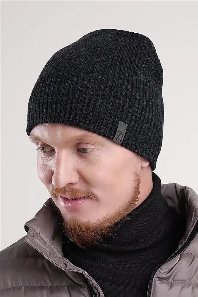 Шапка двойная мужская, декорирована стильной нашивкой логотип. У данной модели 2 варианта посадки: с отворотом и без отворота. Идеально для холодной осени-тёплой зимы.