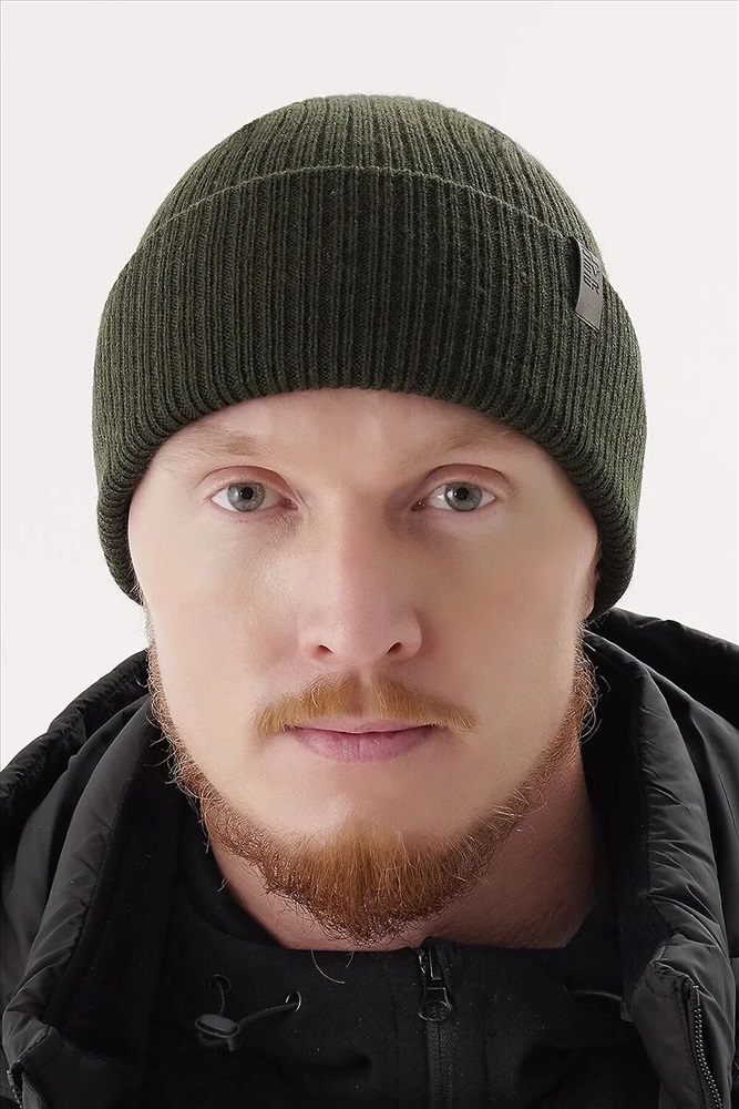 Шапка двойная мужская, декорирована стильной нашивкой логотип. У данной модели 2 варианта посадки: с отворотом и без отворота. Идеально для холодной осени-тёплой зимы.
