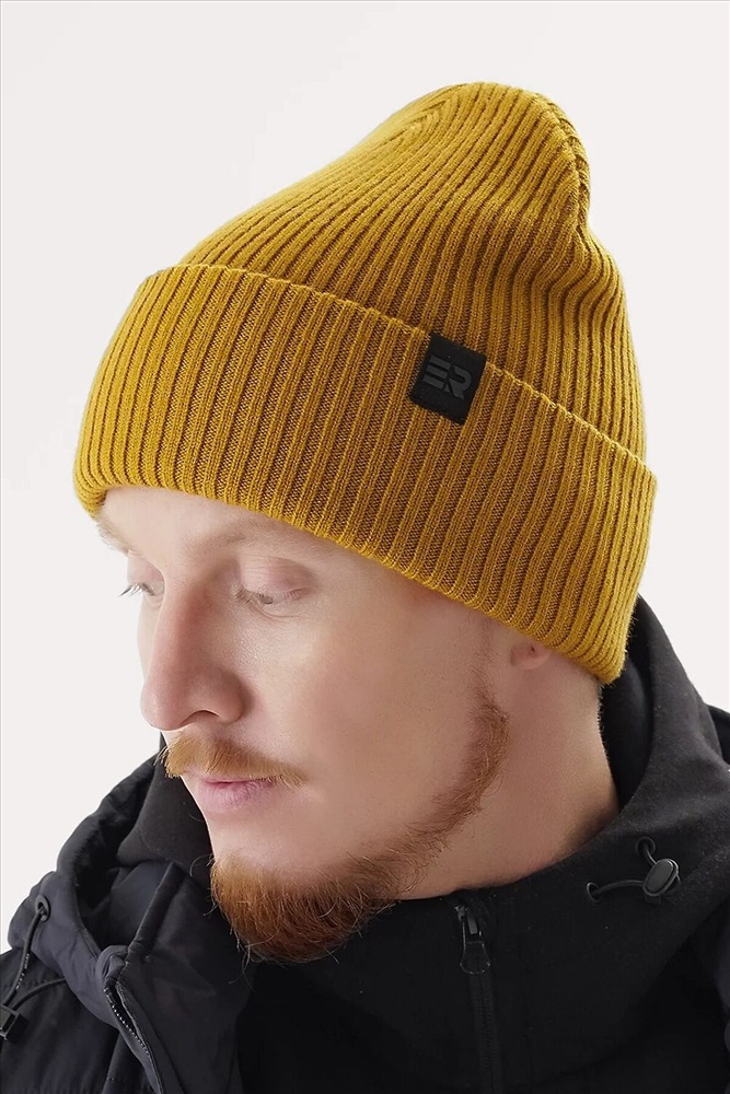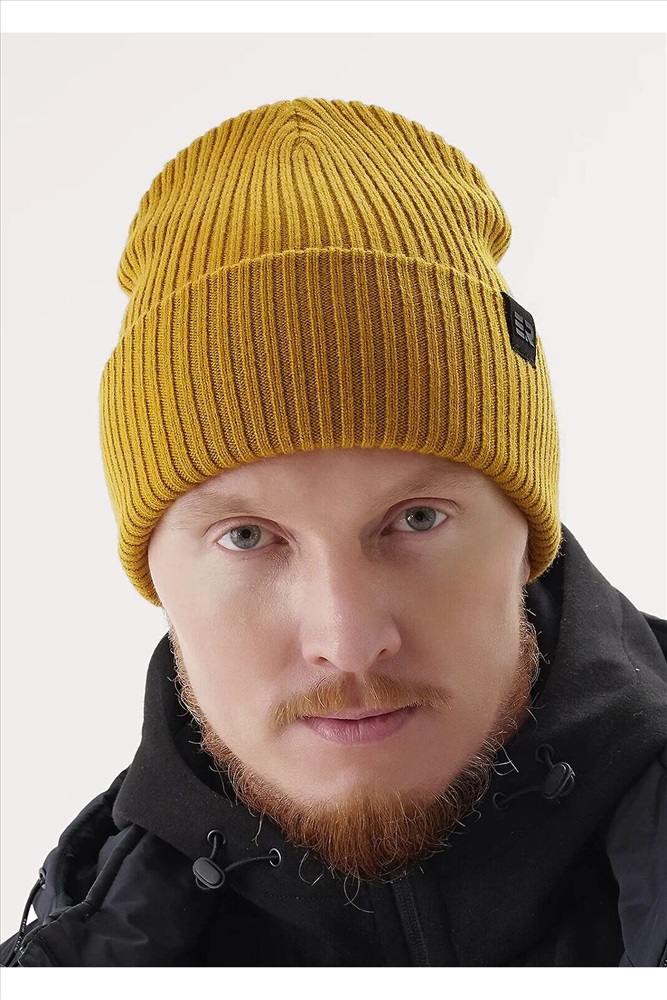 Страна производства: Россия Мужская шапка с отворотом выполнена из высококачественной пряжи с добавлением шерсти, декорирована логотипом- нашивкой.