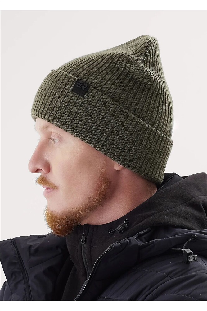 Страна производства: Россия Мужская шапка с отворотом выполнена из высококачественной пряжи с добавлением шерсти, декорирована логотипом- нашивкой.