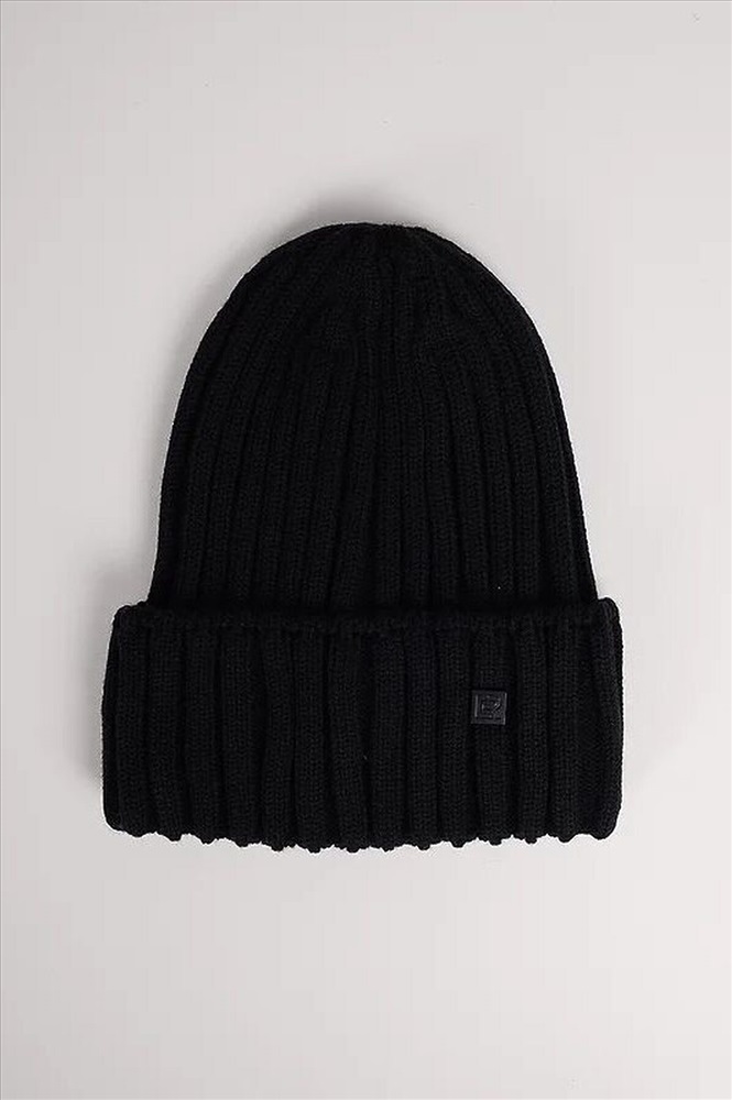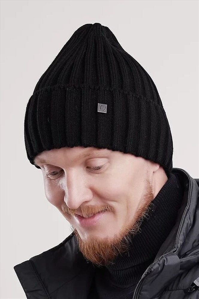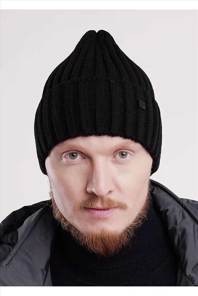 Мужская шапка с отворотом, без подклада. Выполнена из высококачественной пряжи с добавлением шерсти, декорирована стильной нашивкой. Станет не только отличной защитой от холода, но и модным аксессуаром.