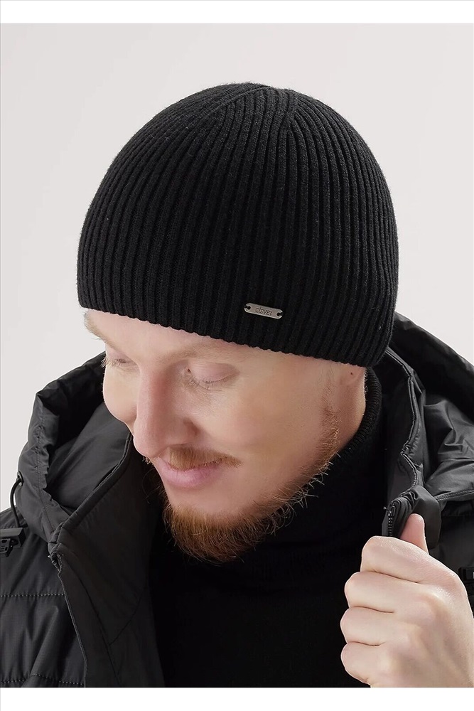 Шапка мужская двухслойная без отворота, без подклада. Выполнена из высококачественной пряжи с добавлением шерсти, декорирована стильной нашивкой в височной зоне. Идеально подойдёт для холодной зимы.