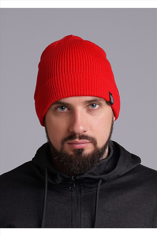 Шапка мужская с отворотом, декорирована стильной нашивкой. Подойдёт для весенне- осеннего периода.