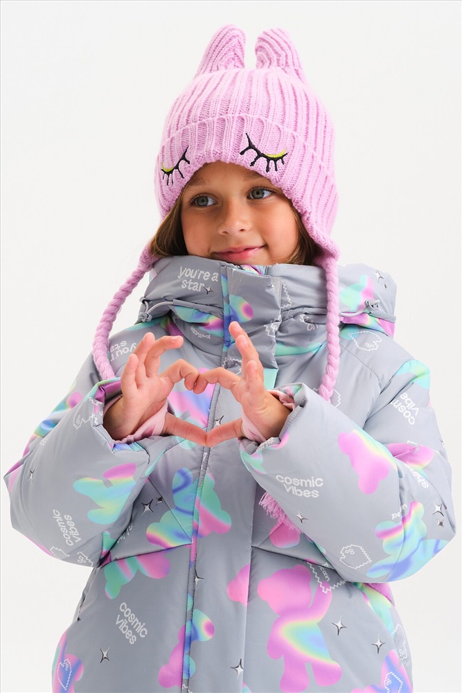 Ваша дочка не любит надевать шапку? Просто у неё не было нашей прикольной шапки-игрушки! С ней сборы на улицу станут весёлыми и радостными! Шапка для девочки осень с забавными вывязанными рожками жирафа и вышитыми на отвороте глазками порадует вашего ребёнка. Шапка для девочки с отворотом и функциональными цельновывязаными ушками по бокам. В составе ткани 100% акрил — приятный на ощупь материал, тёплый и эластичный. Шапка розовая легко стирается, она не растягивается и не мнётся, сохраняет превосходный внешний вид надолго. Шапка осенняя имеет прекрасные терморегулирующие свойства помогают сохранять тепло даже при низких температурах. Внутри подкладка из флиса — она мягкая и обеспечивает дополнительную защиту от холода. Шапка с ушками имеет форму, которая повторяет контуры головы — она плотно прилегает к голове ребёнка, не сползает. Цельновывязаные ушки по бокам прикрывают уши ребёнка от холода и ветра. На ушках декоративные завязки с кисточками. Такая шапка станет ярким аксессуаром в гардеробе маленькой модницы!