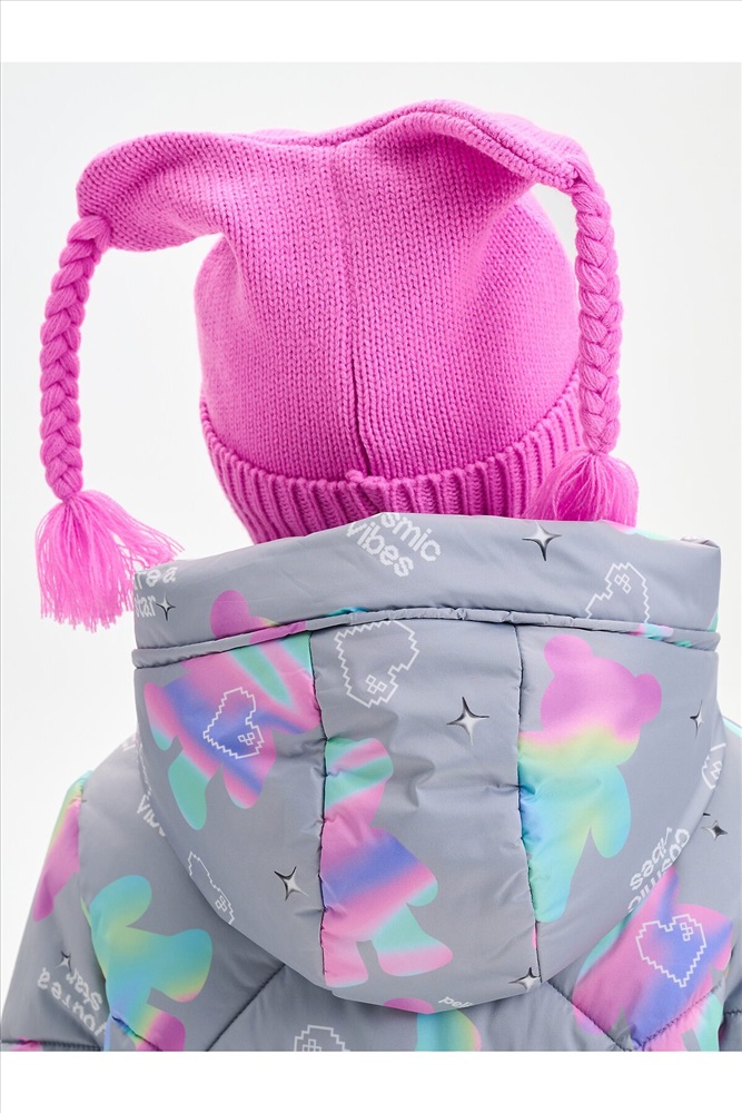 Тёплая и мягкая шапка с завязками на уютном флисовом подкладе — отличный выбор для прохладной погоды. Верхняя часть украшена забавными свисающими ушками с милыми косичками, которые придают модели игривый и неповторимый стиль. Шапка связана плотной, эластичной вязкой с аккуратным отворотом и цельновязанными ушками по низу. Модель отлично закрывает уши и шею, надёжно защищая от ветра и холода. Мягкие завязки обеспечивают комфортную и надежную фиксацию на голове. Особенный акцент — вышивка на отвороте с вдохновляющей надписью «Будь самим собой», которая придаёт образу индивидуальность и настроение.