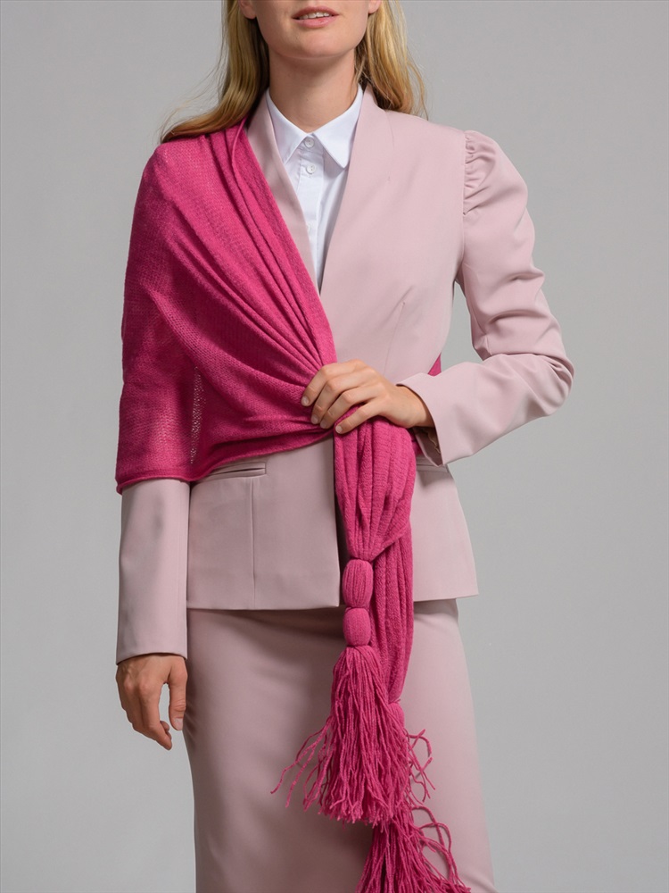 Размер: 200 х 60 см Состав: Шерсть 65% Акрил 35% Цвет: Фуксия Отделка: Помпон Принт: Однотонный Сезон: Демисезон, Осень, Весна, Зима Большой,красивый вязаный шарф. Края изделия украшены большими кистями-помпонами. Только ручная стирка. Комментарии к товару