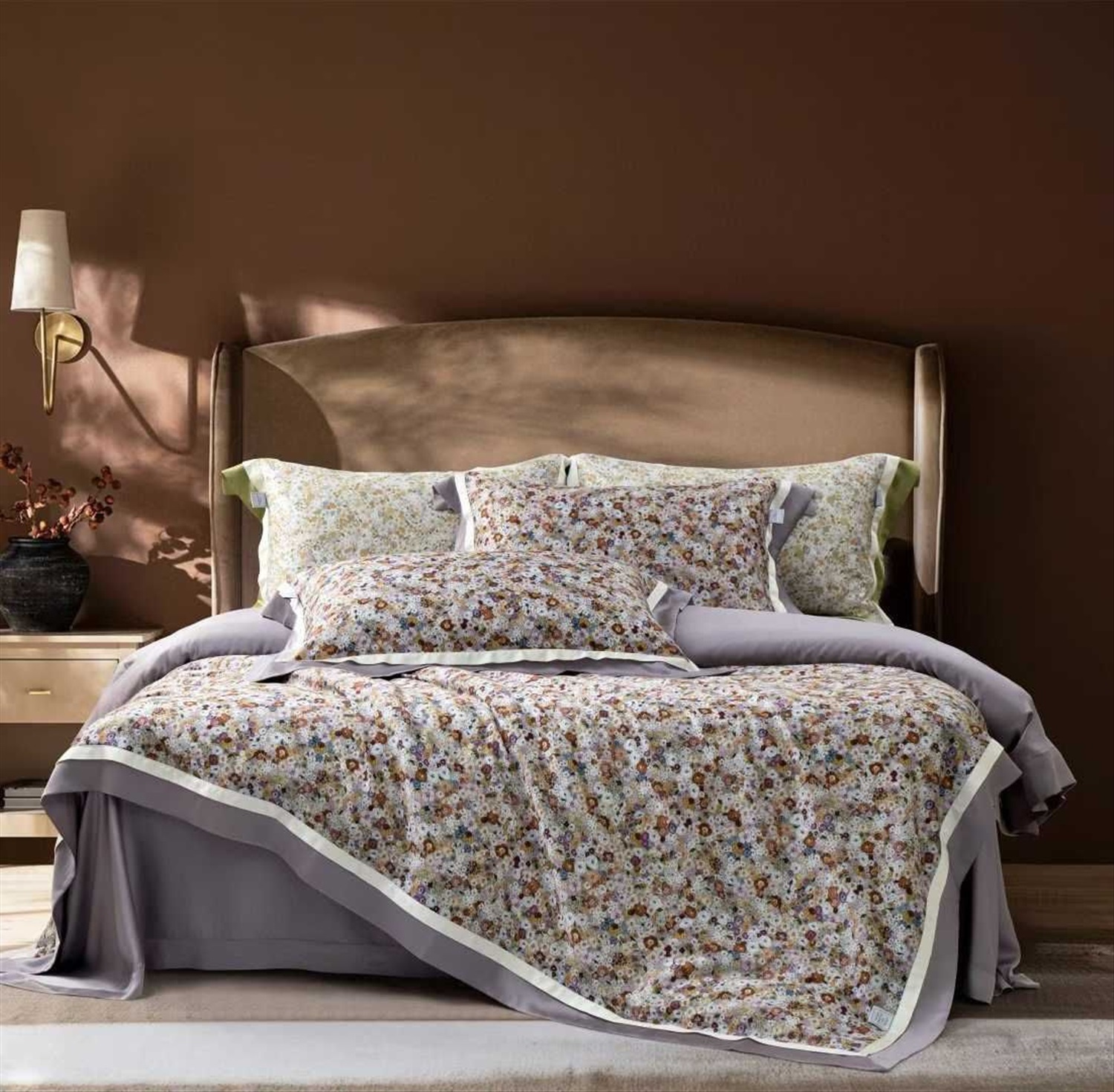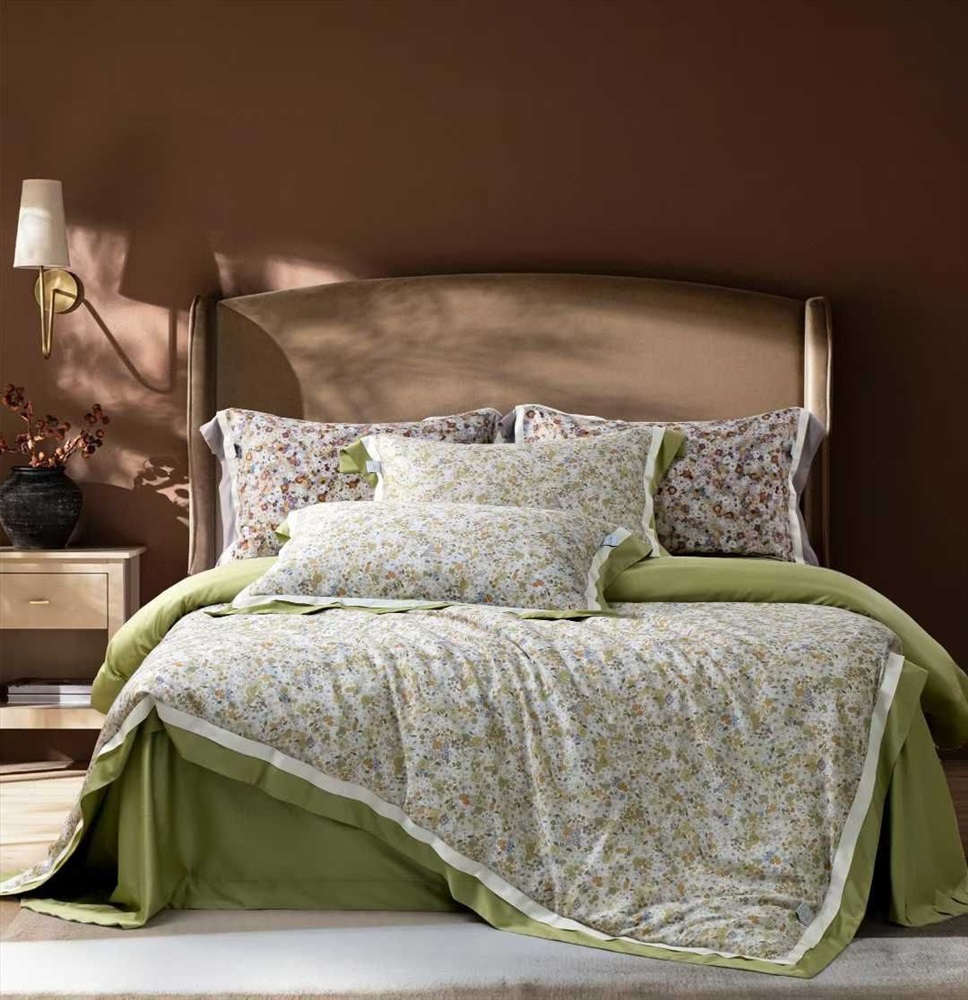 В составе: изготовленные с использованием цифровой печати: 54% пима-хлопок (основа) + 46% чжэньлань (тонкий тенсель) (уток). Нить двойной мерсеризации класса LF, плотность 400 корней, 120 г/см², 120S, OEKO-TEX® Standard 100, поливинилацетат (ПВА), 120 г/см², 120S, OEKO-TEX® Standard 100. Внешний вид и цветовое решение – высочайшего качества