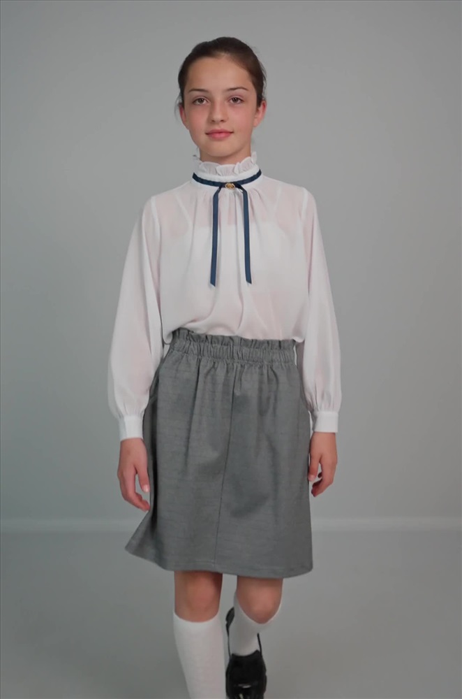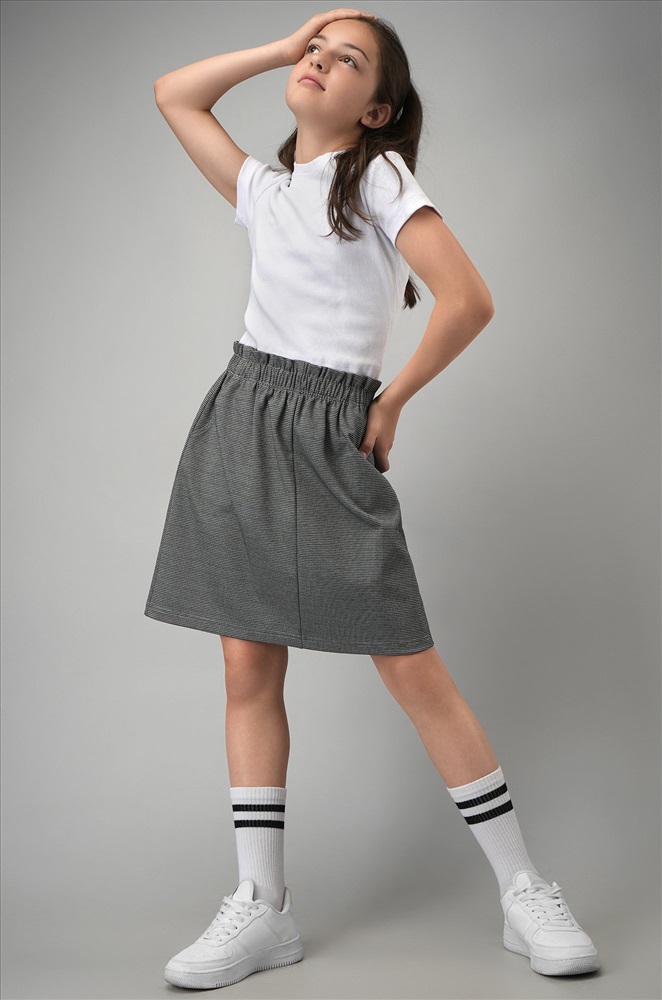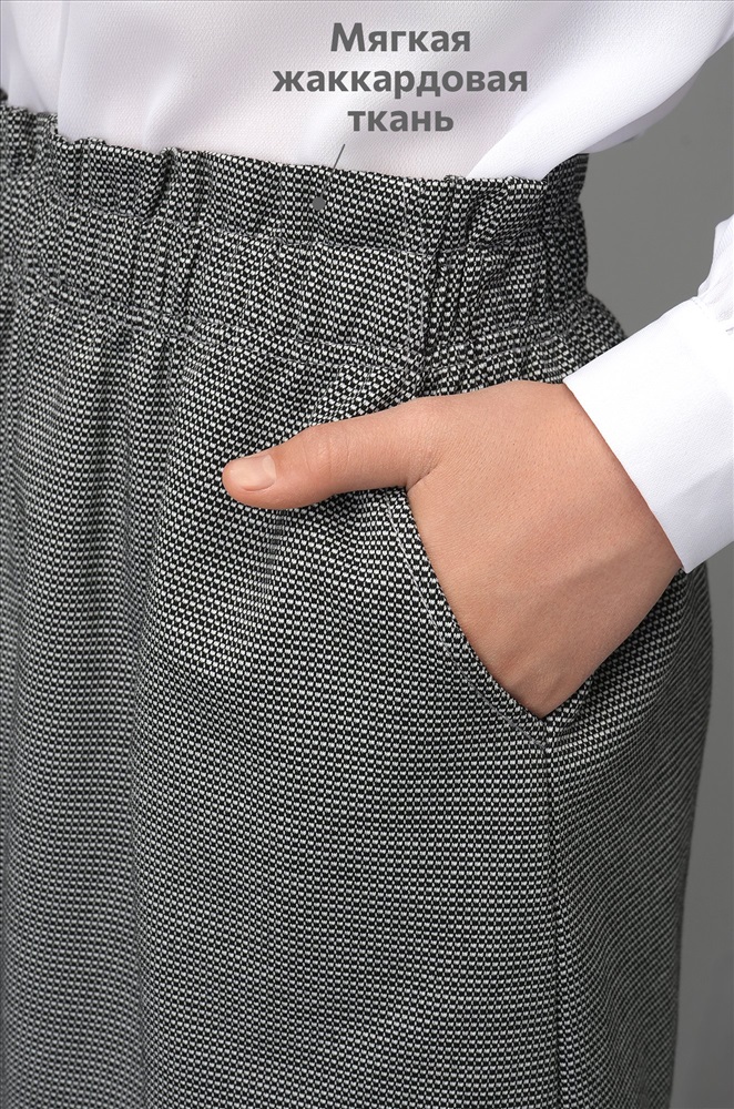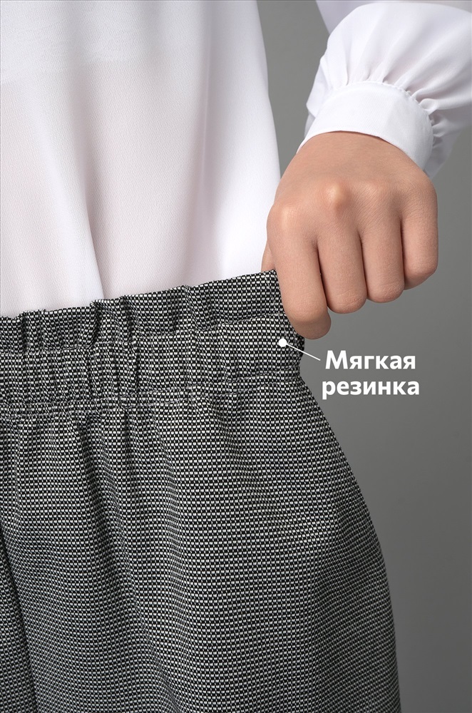 Элегантная юбка для девочки подростка в сером цвете с рисунком «гусиная лапка» привлечёт внимание своим стилем и аккуратностью. Детская юбочка сочетает комфорт, практичность и современный дизайн.