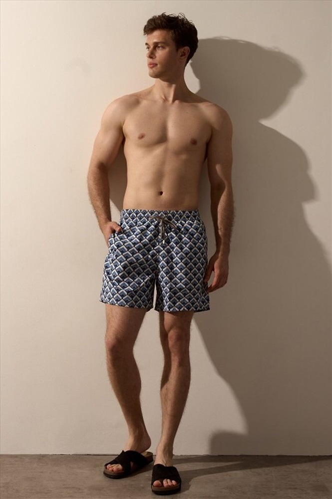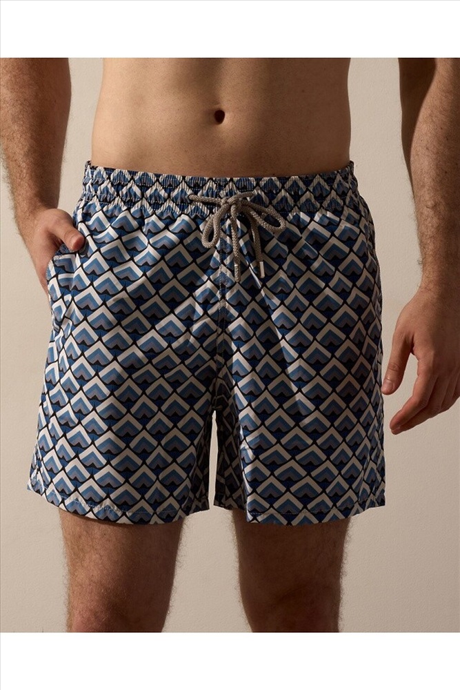 Страна производства: Россия Плавательные шорты. Карманы в боковых швах. Задний карман с клапаном на правой задней половинке шорт. Пояс цельнокроенный, отстроченный, внутри с резинкой и шнурком.