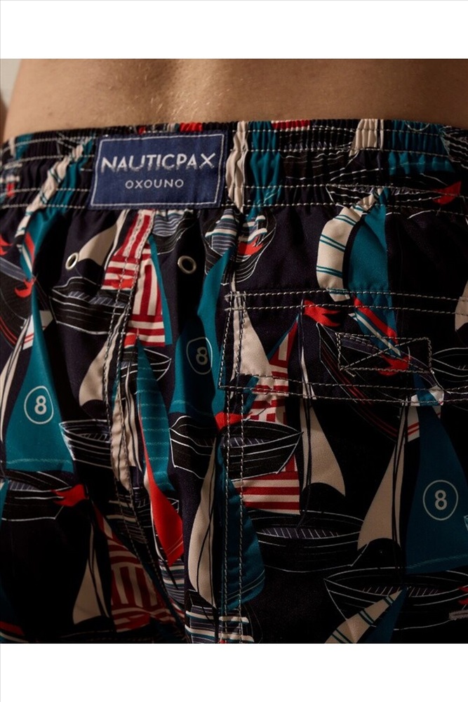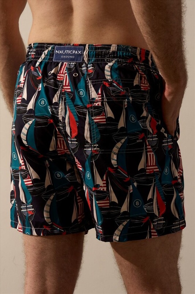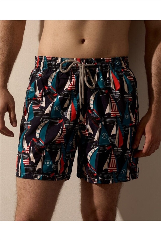 Страна производства: Россия Плавательные шорты. Карманы в боковых швах. Задний карман с клапаном на правой задней половинке шорт. Пояс цельнокроенный, отстроченный, внутри с резинкой и шнурком.
