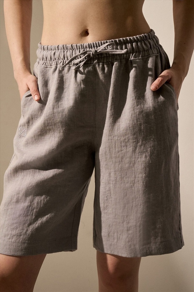Шорты свободного кроя. Боковые карманы, эластичный пояс регулируется шнуром. Ткань - 100% лён.