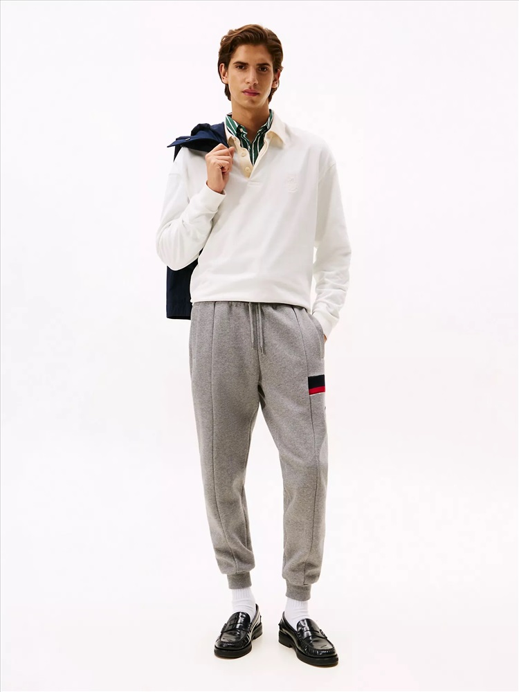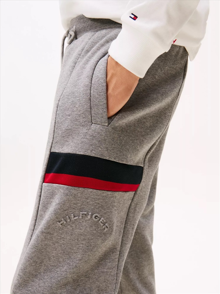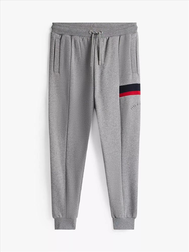 Tommy Hilfiger men's pant. These sweatpants are made from cotton-blend flex fleece with signature stripe detailing, making them a comfortable and on-trend choice for casual days.
