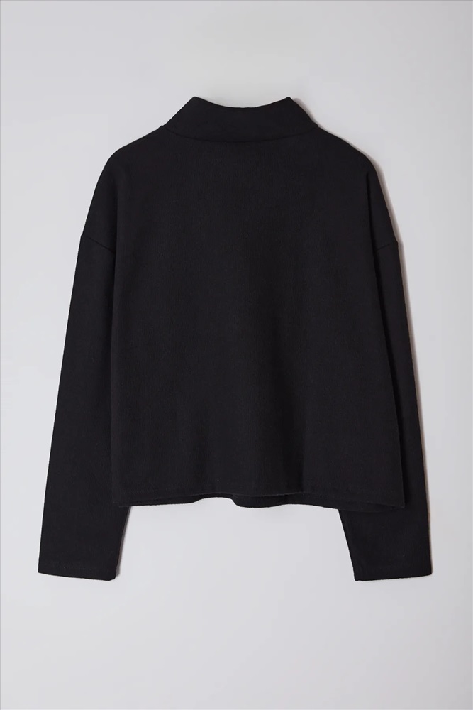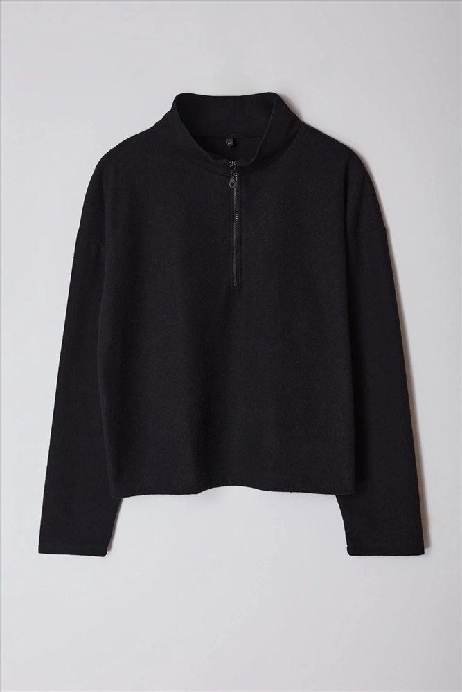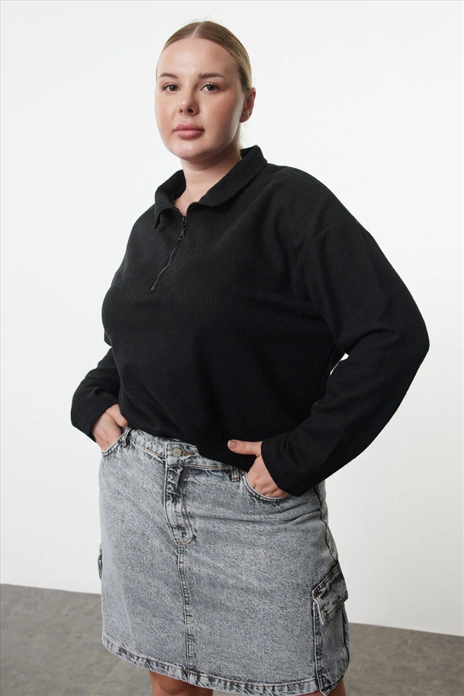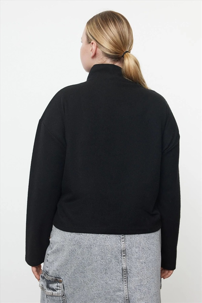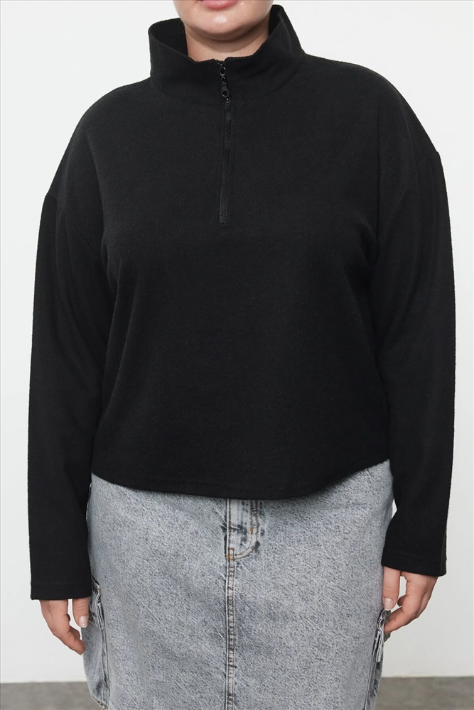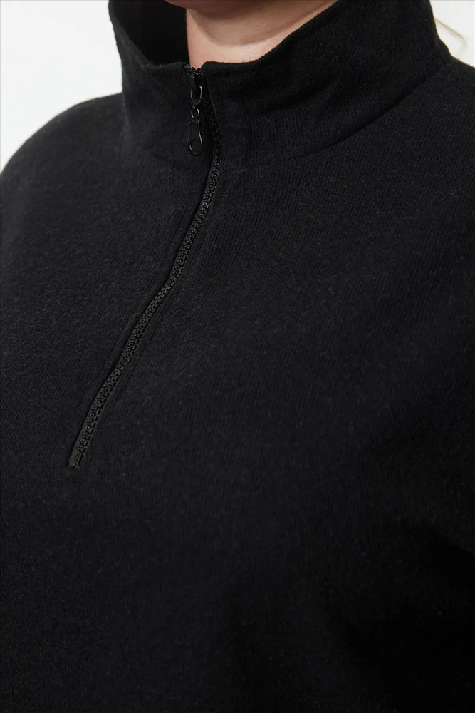 Siyah Dik Yaka Fermuarlı Selanik İnce Örme Sweatshirt TBBAW23AO00006