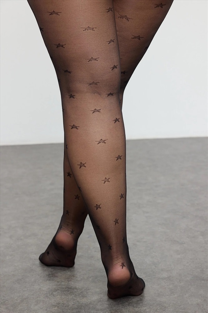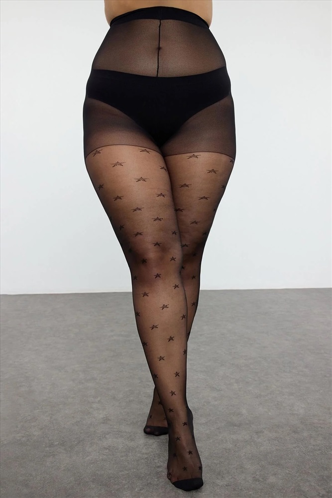 Siyah 15 Den 2'li Paket Minimal Yıldız Desenli Büyük Beden Külotlu Çorap TBBAW25KC00004