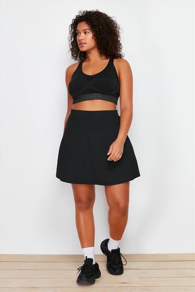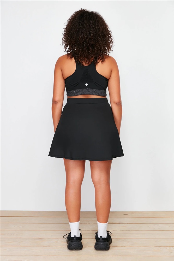 Siyah 2 Katmanlı Örme Spor Şort Etek TBBSS24AP00024
