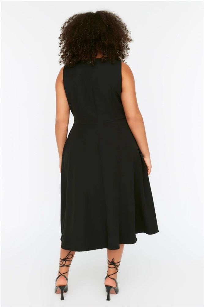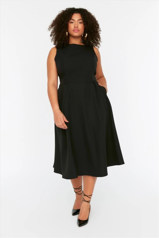 Siyah A-Line Dokuma Cep Detaylı Elbise TBBSS22EL1598