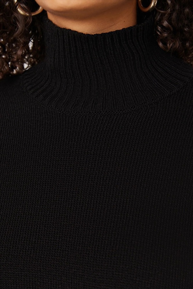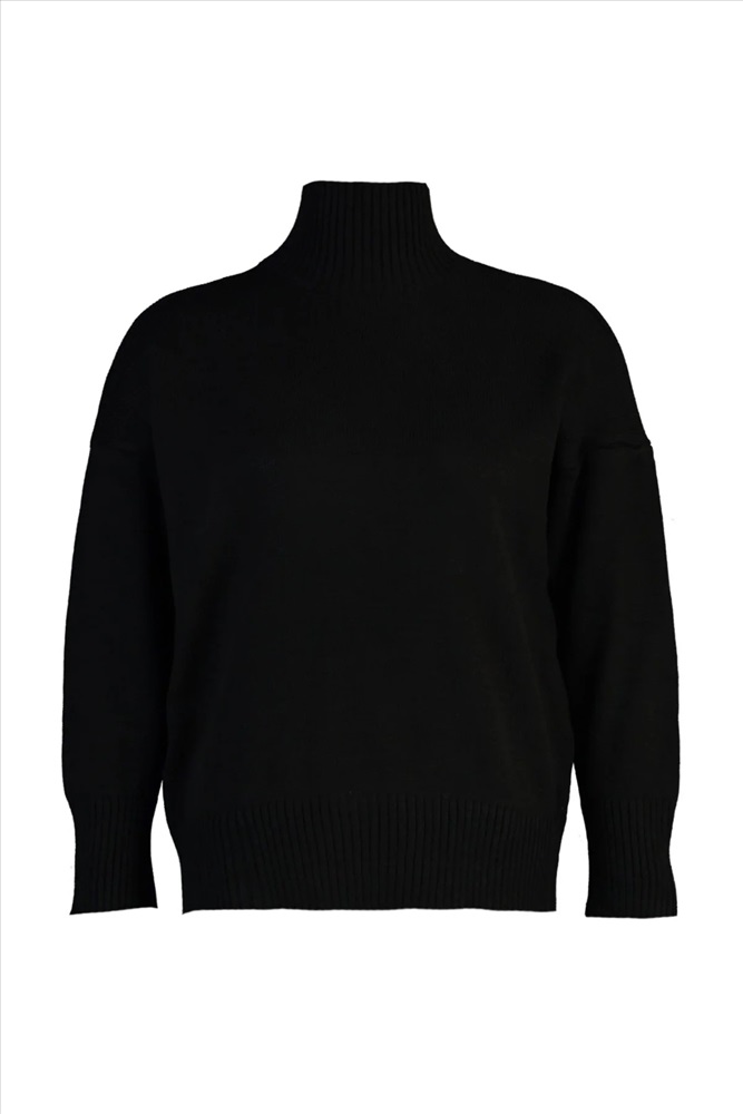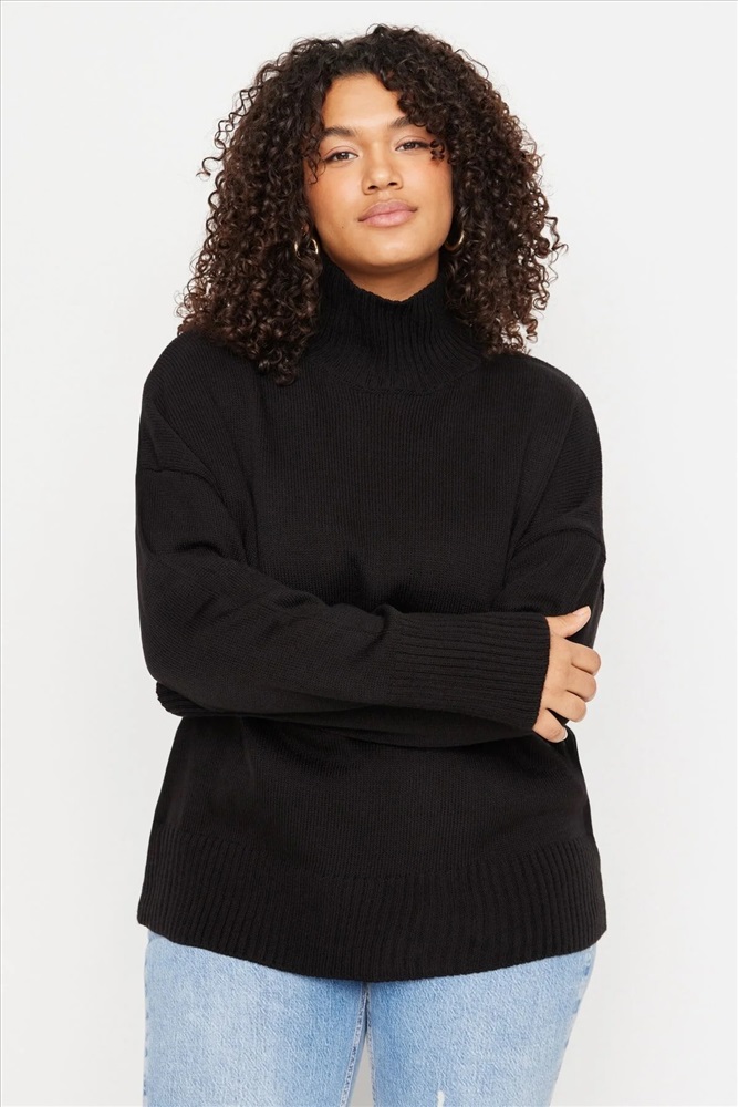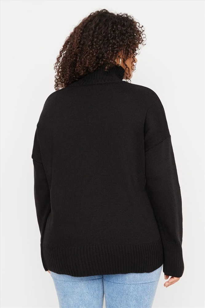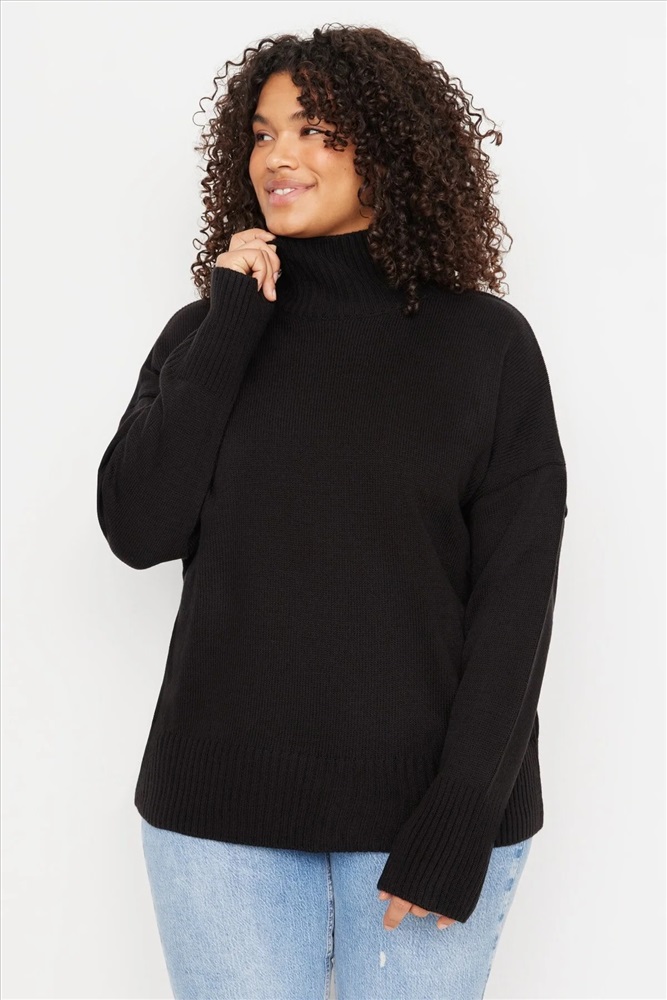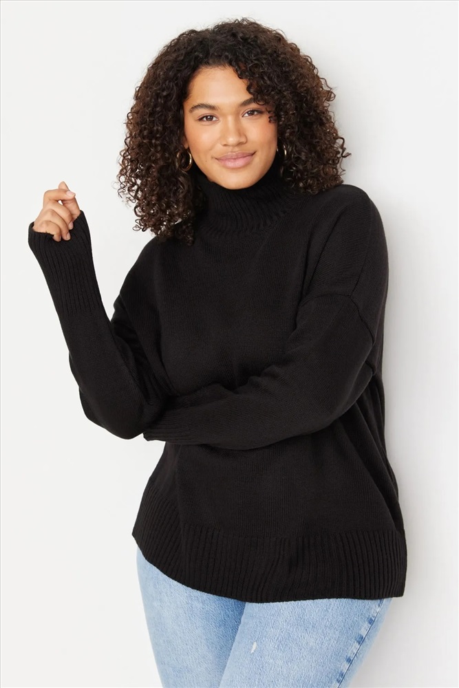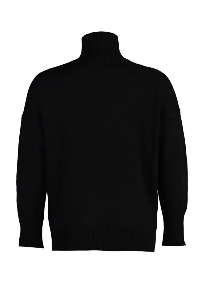 Siyah Balıkçı Yaka Düşük Omuz Triko Kazak TBBAW23AN00136