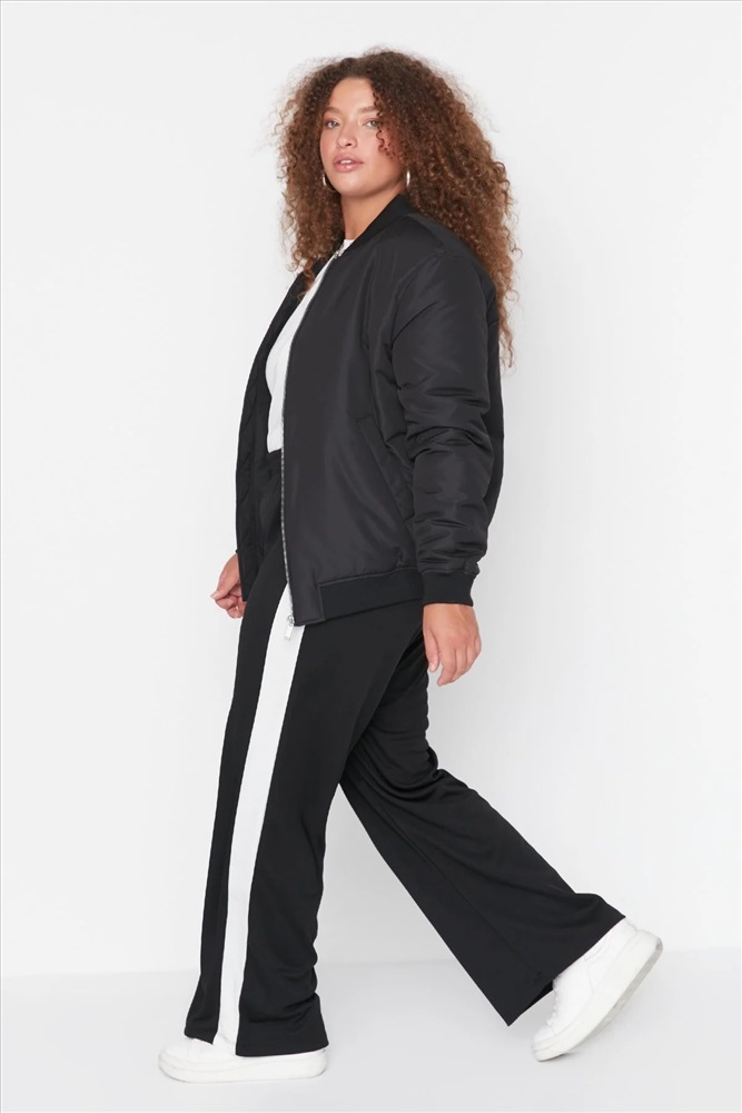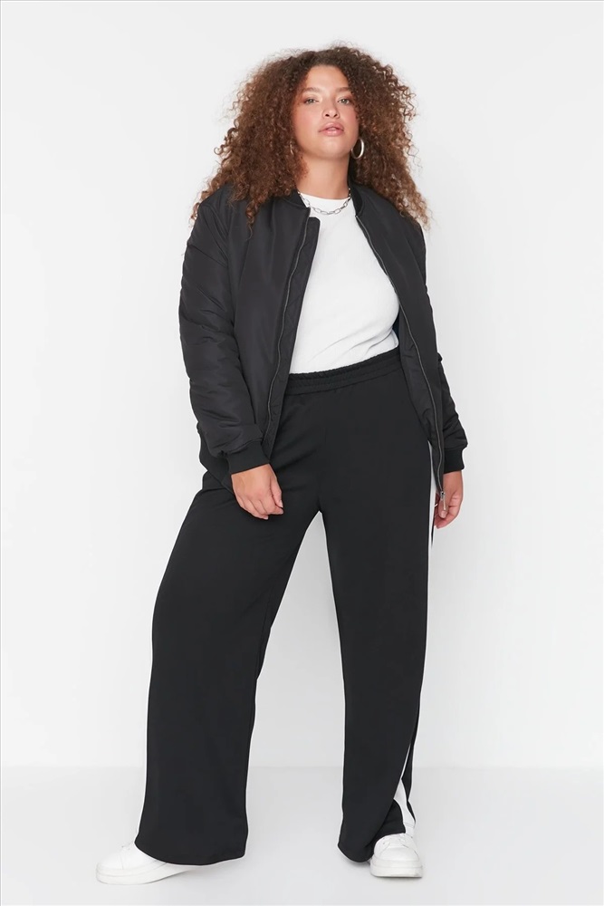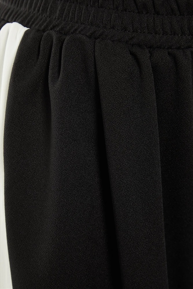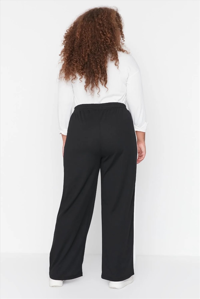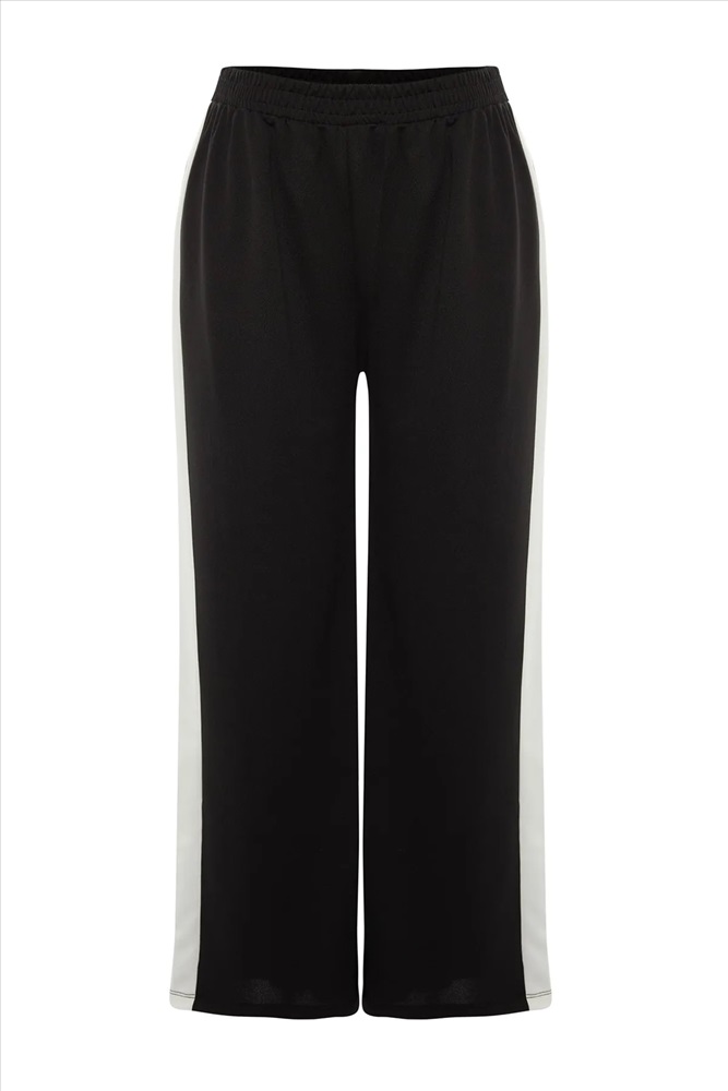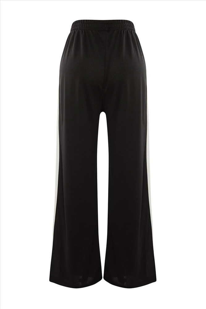 Siyah Beli Lastikli Şerit Detaylı Geniş Paça Örme Pantolon TBBAW23AR00018