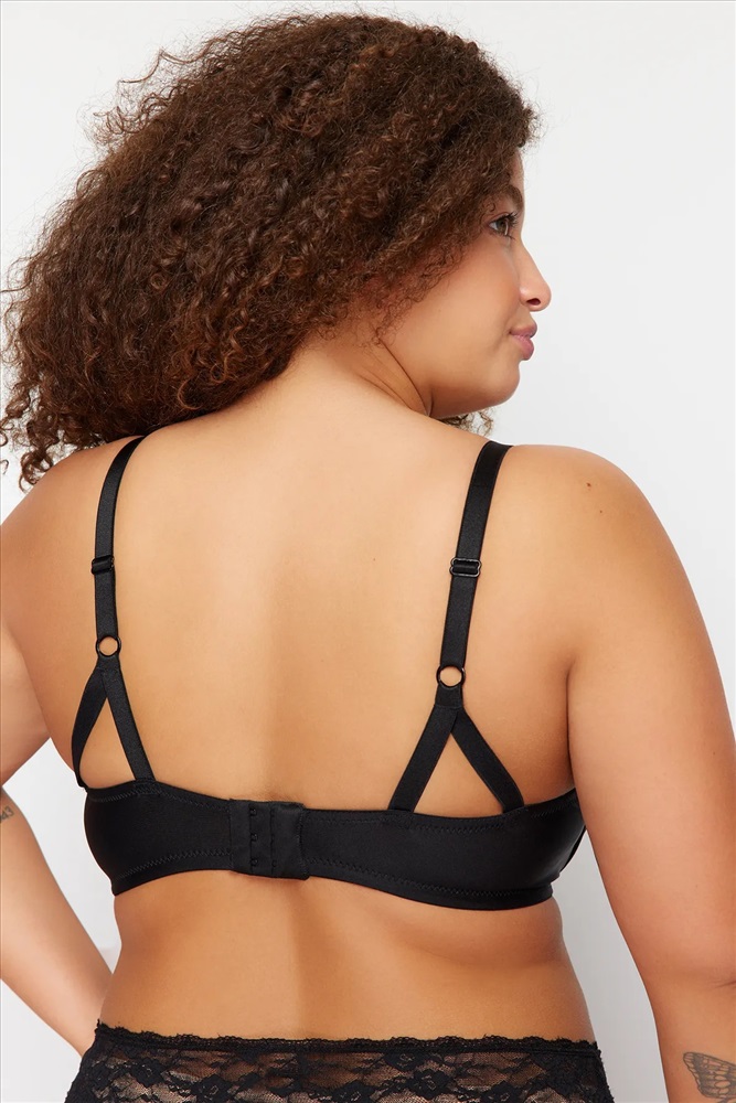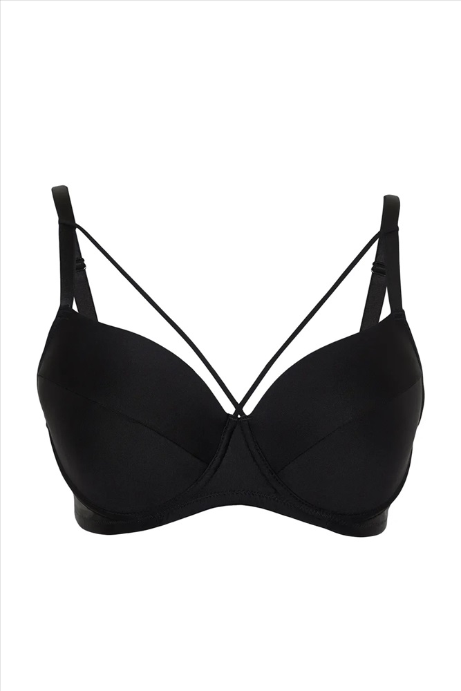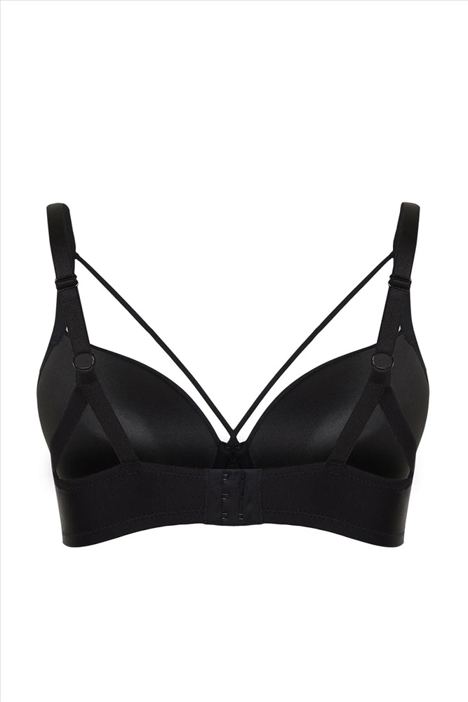 Siyah Biye Detaylı Sünger Kaplı Büyük Beden Sütyen TBBSS24CW00013