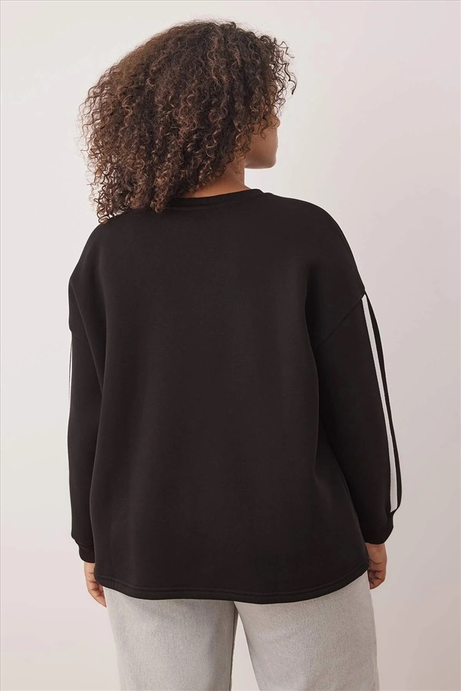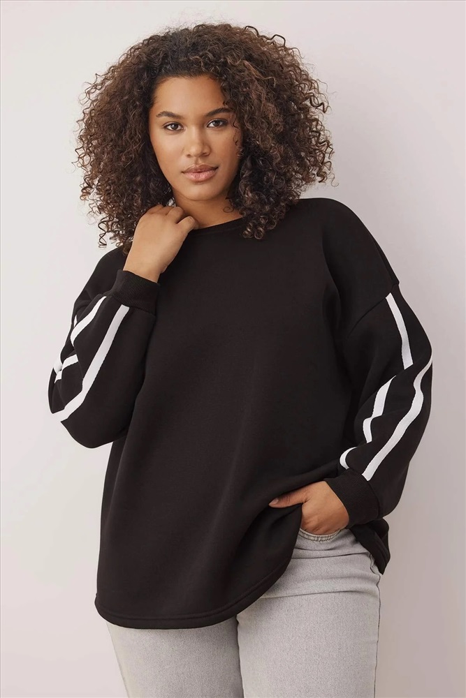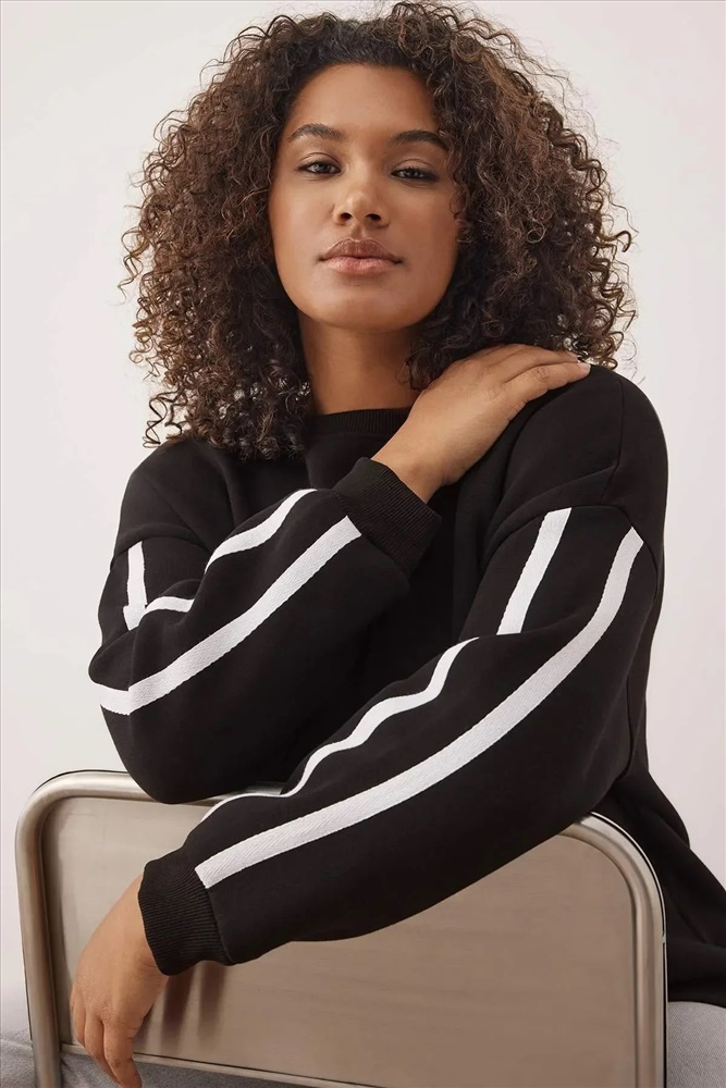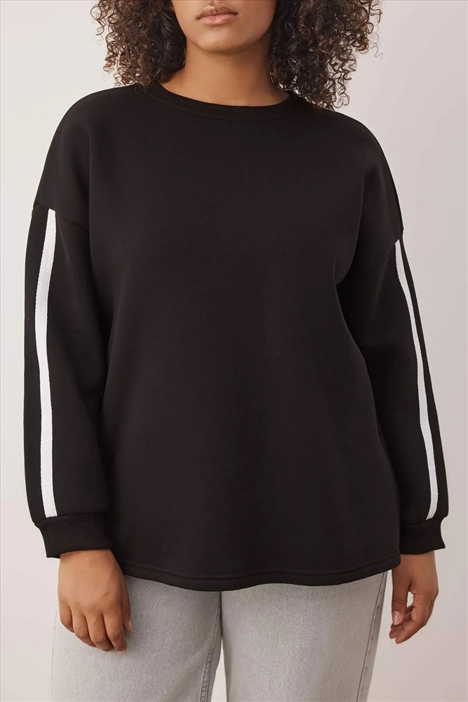 Siyah Şerit Detaylı Oversize/Bol Kesim İnce Örme Sweatshirt
