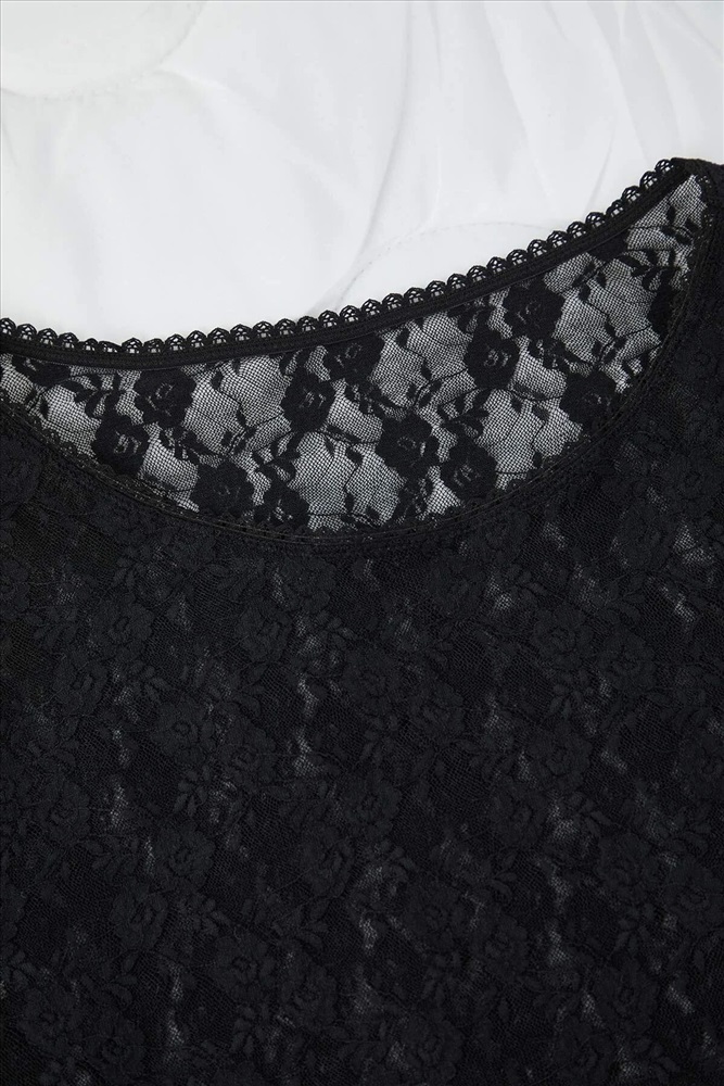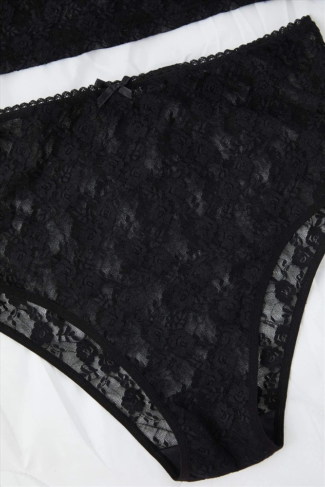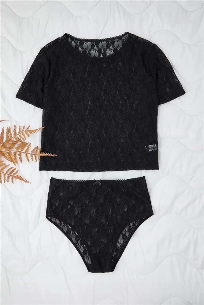 Siyah Fantezi Dantelli T-Shirt & Külot Büyük Beden İç Çamaşır Takımı TBBAW26DG00005