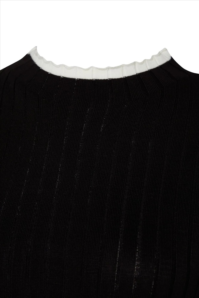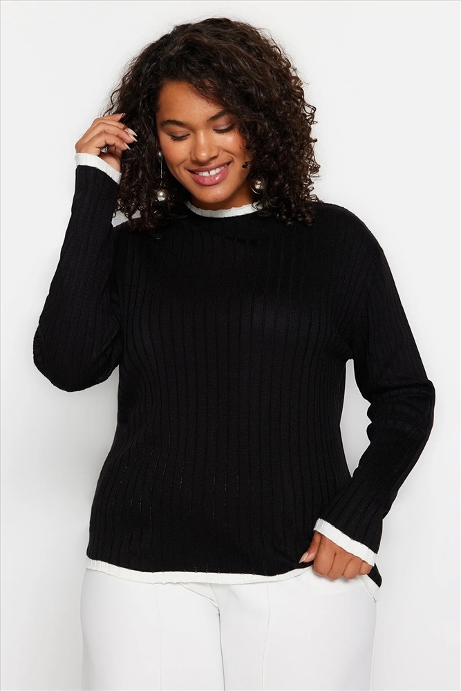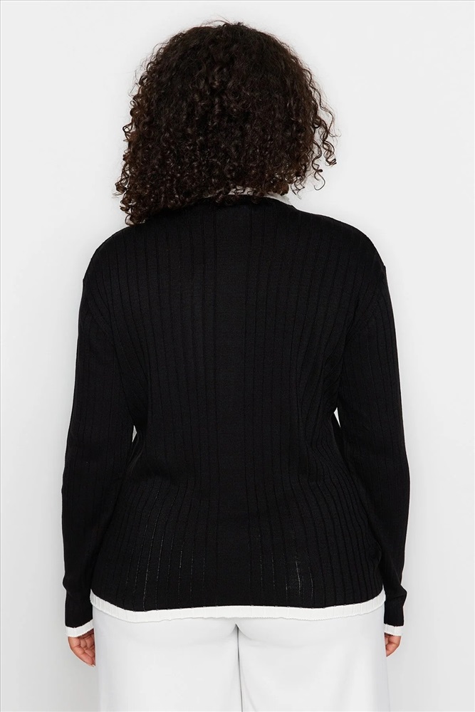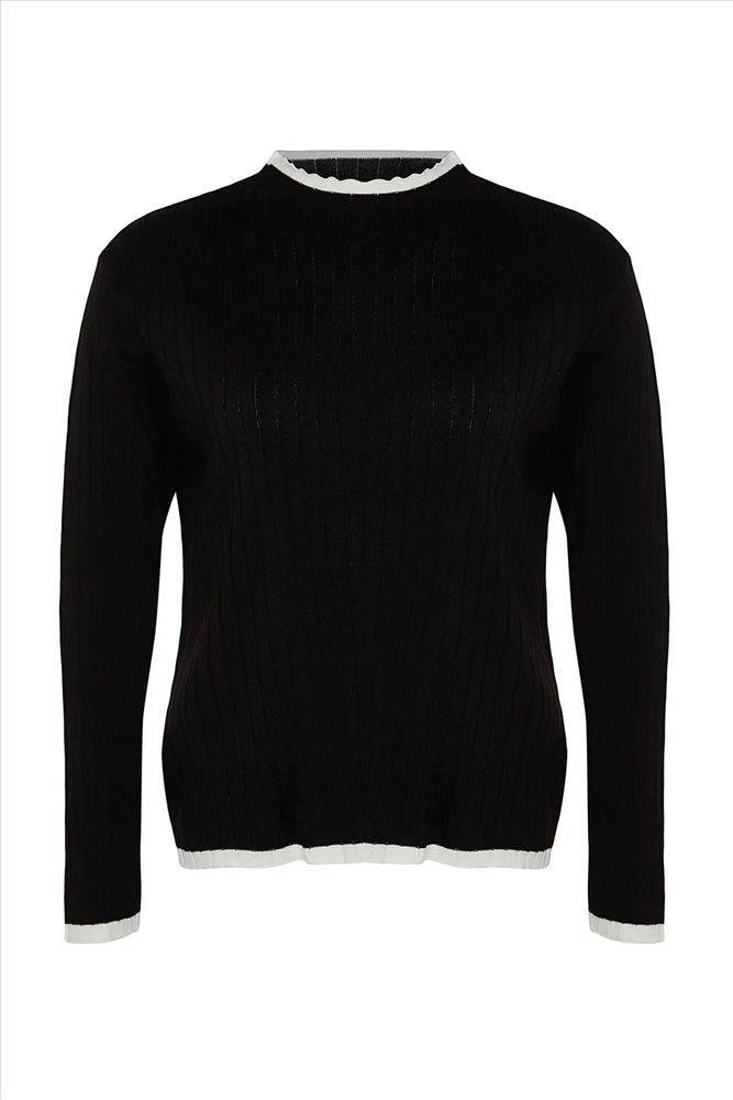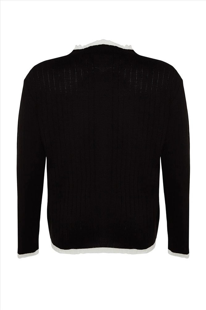 Siyah Fitilli Yakası Çizgi Detaylı Triko Kazak TBBAW24AN00029